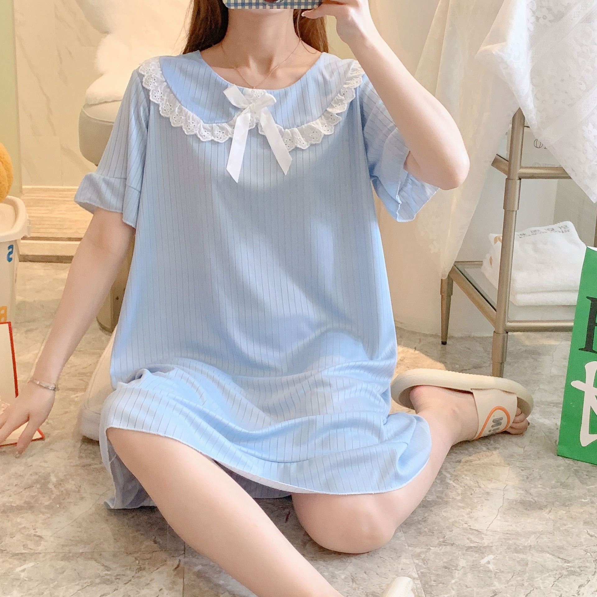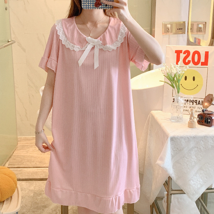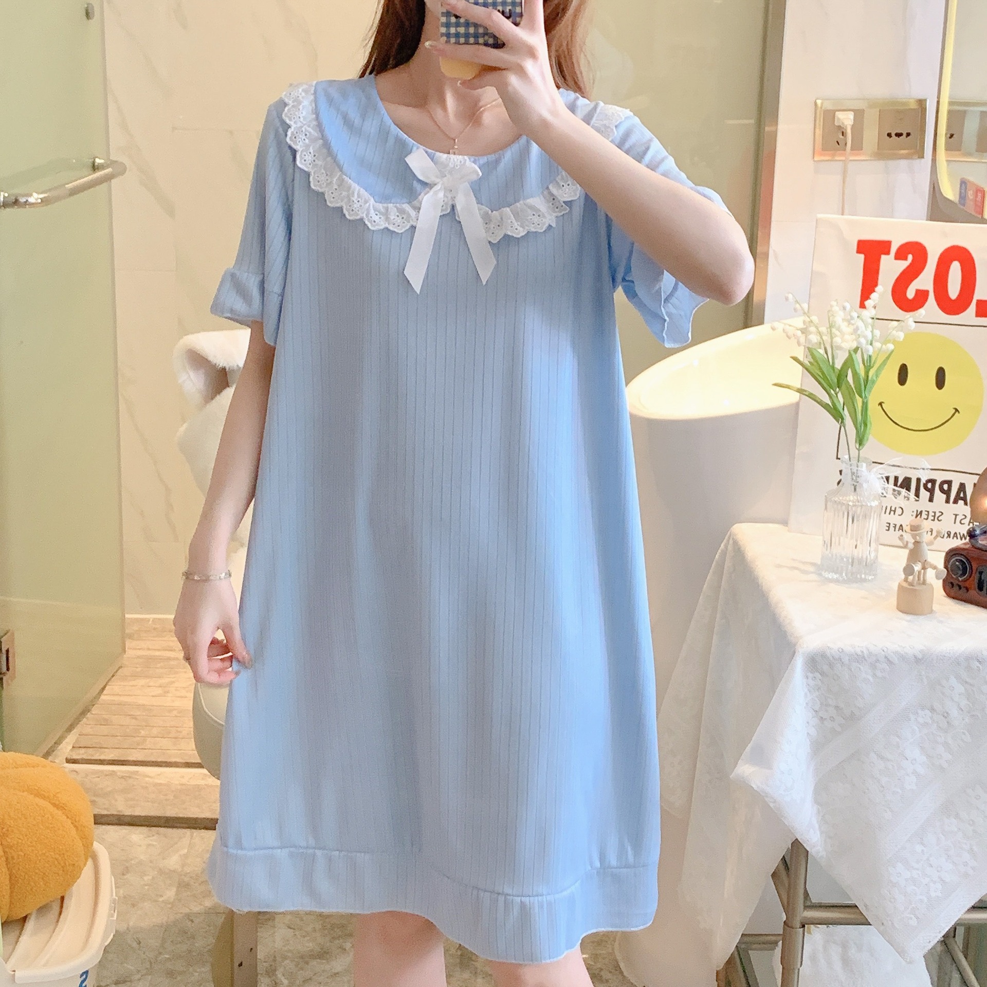 公主风夏季短袖睡裙女士花边娃娃领可爱少女甜美家居服