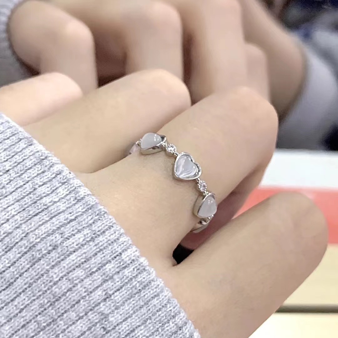 少女爱心猫眼石戒指女小众设计ins个性冷淡风开口可调节食指指环