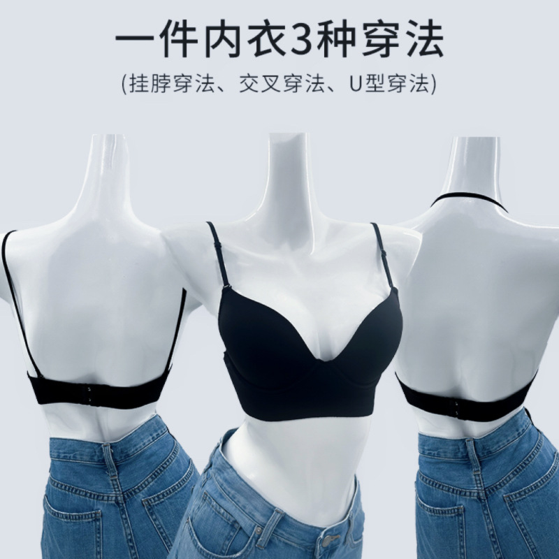 U型美背内衣女薄款聚拢防下垂无肩带文胸夏季挂脖多功能性感胸罩