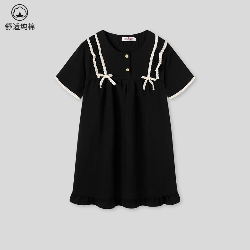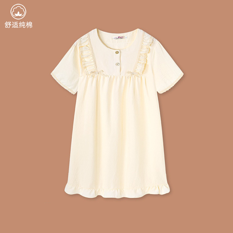 短袖睡裙夏季女款纯棉中长款宫廷复古风家居服大码云朵棉睡衣女夏