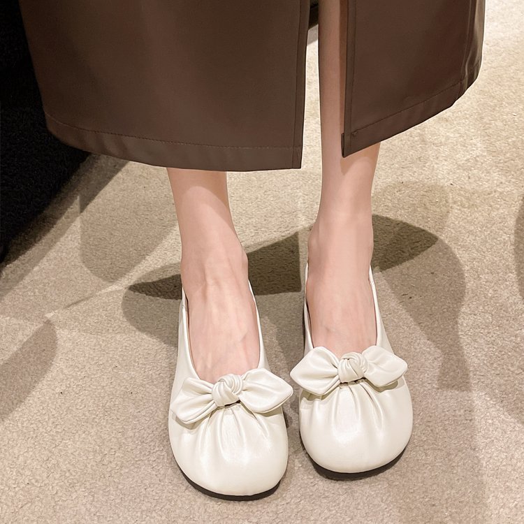 夏季新款蝴蝶结平底单鞋圆头浅口豆豆鞋软底软面女鞋