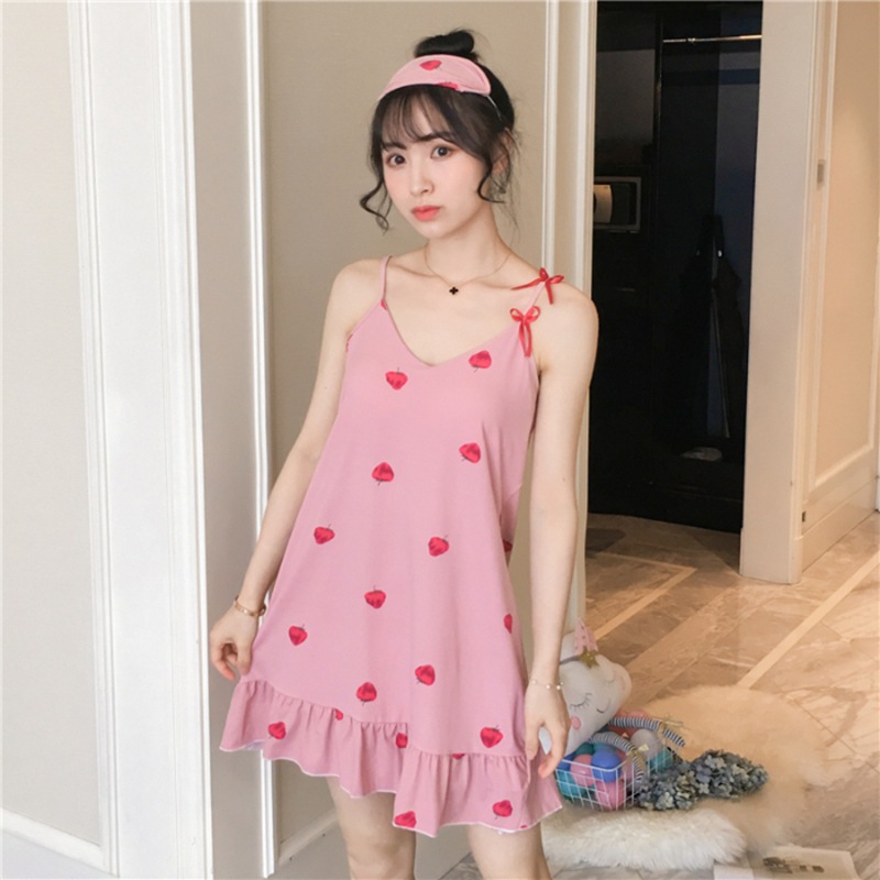 Sexy nightdress性感夏季吊带草莓睡裙女宽松可调节牛奶丝家居服