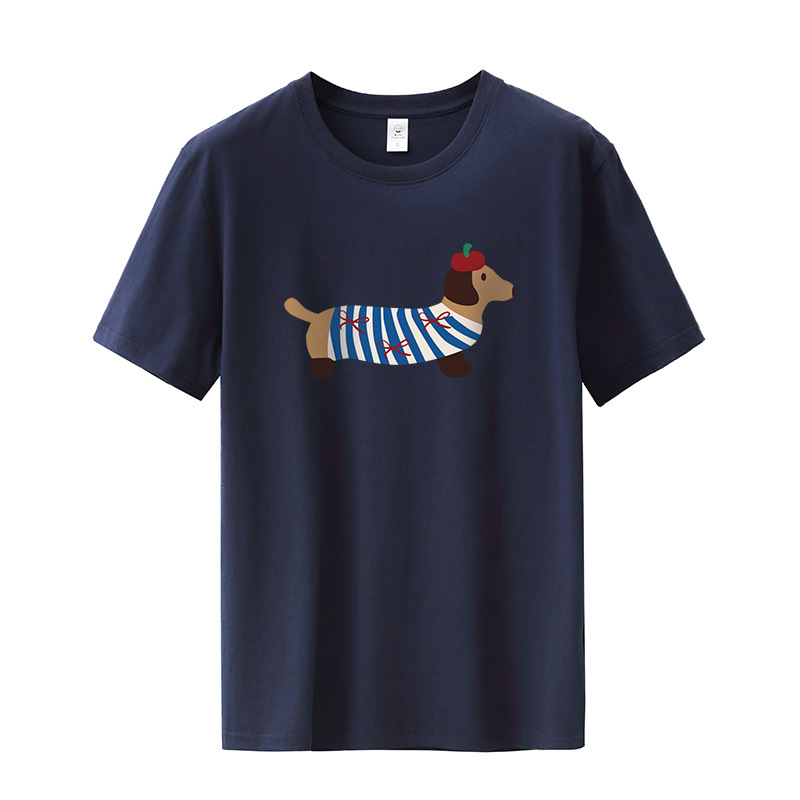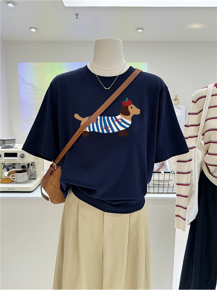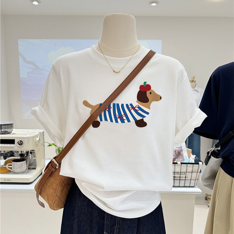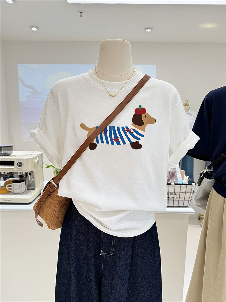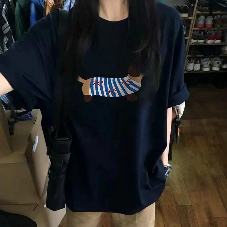 韩系小众腊肠狗印花短袖女夏季新款大码宽松显瘦上衣纯棉T恤