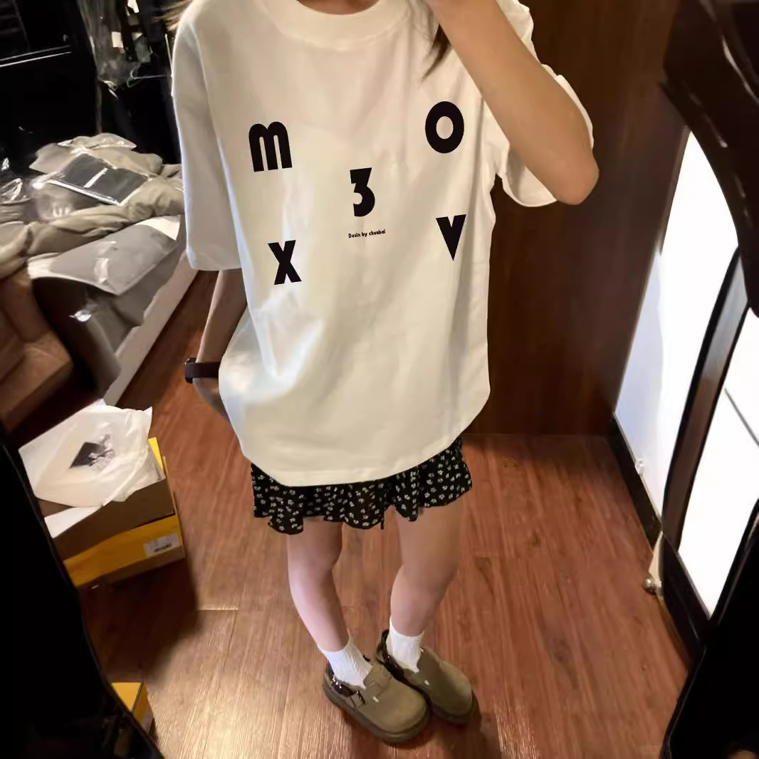 美式字母印花T恤女重磅纯棉上衣夏季大码宽松显瘦oversize短袖潮