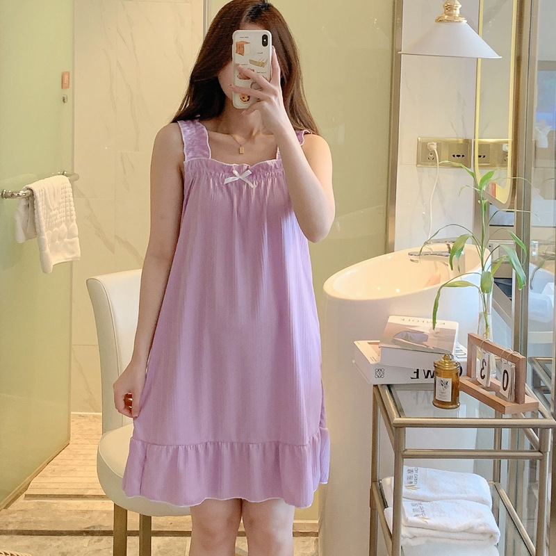 坑条吊带睡裙紫