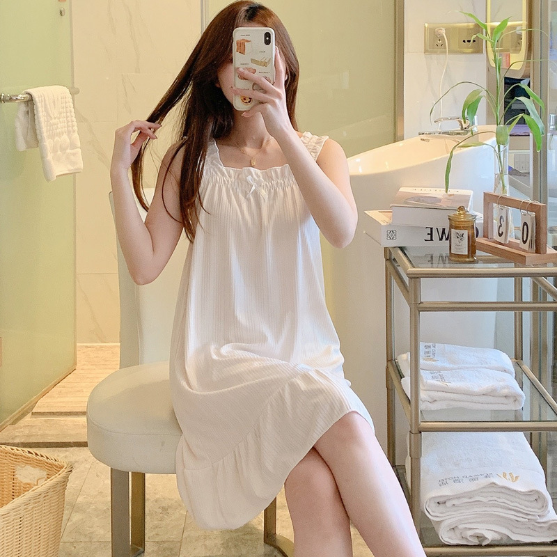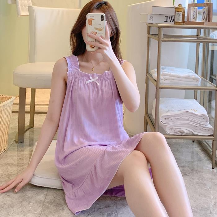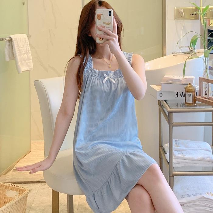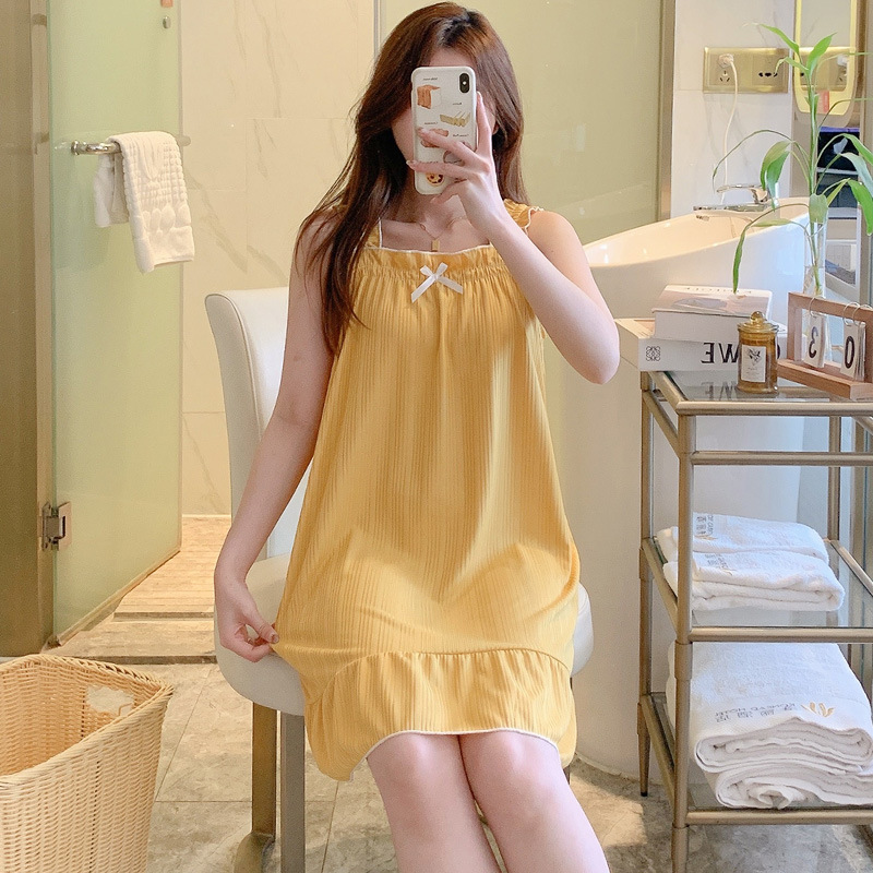 韩版甜美小清新吊带睡裙女夏薄款清凉少女居家牛奶丝坑条