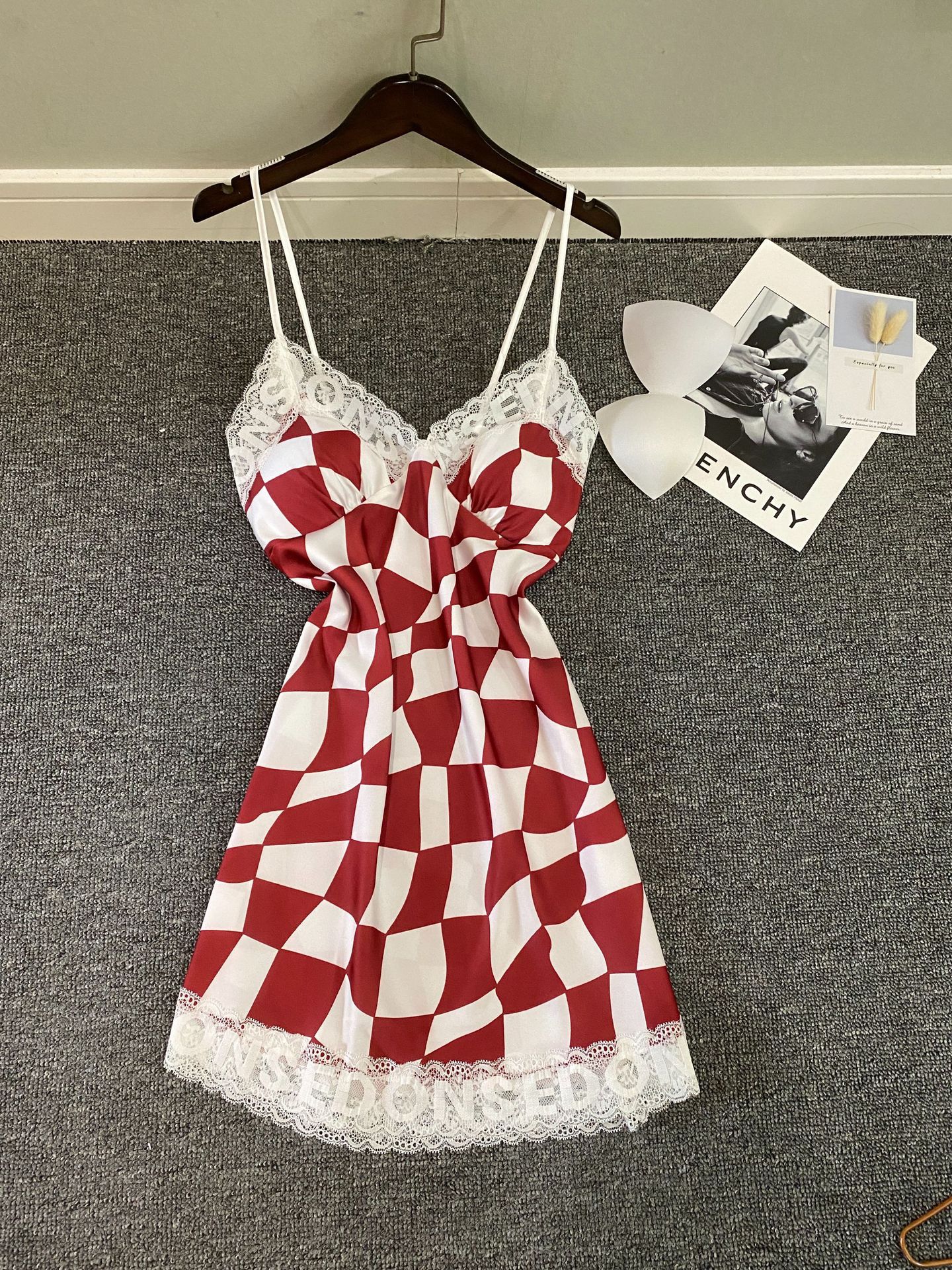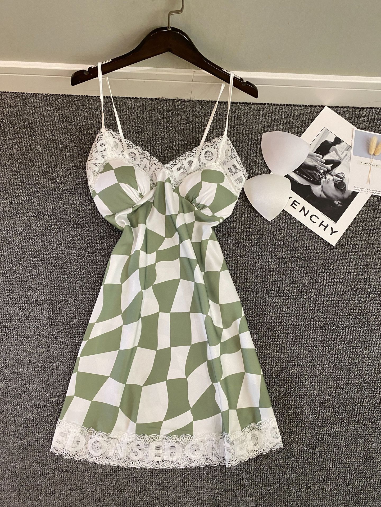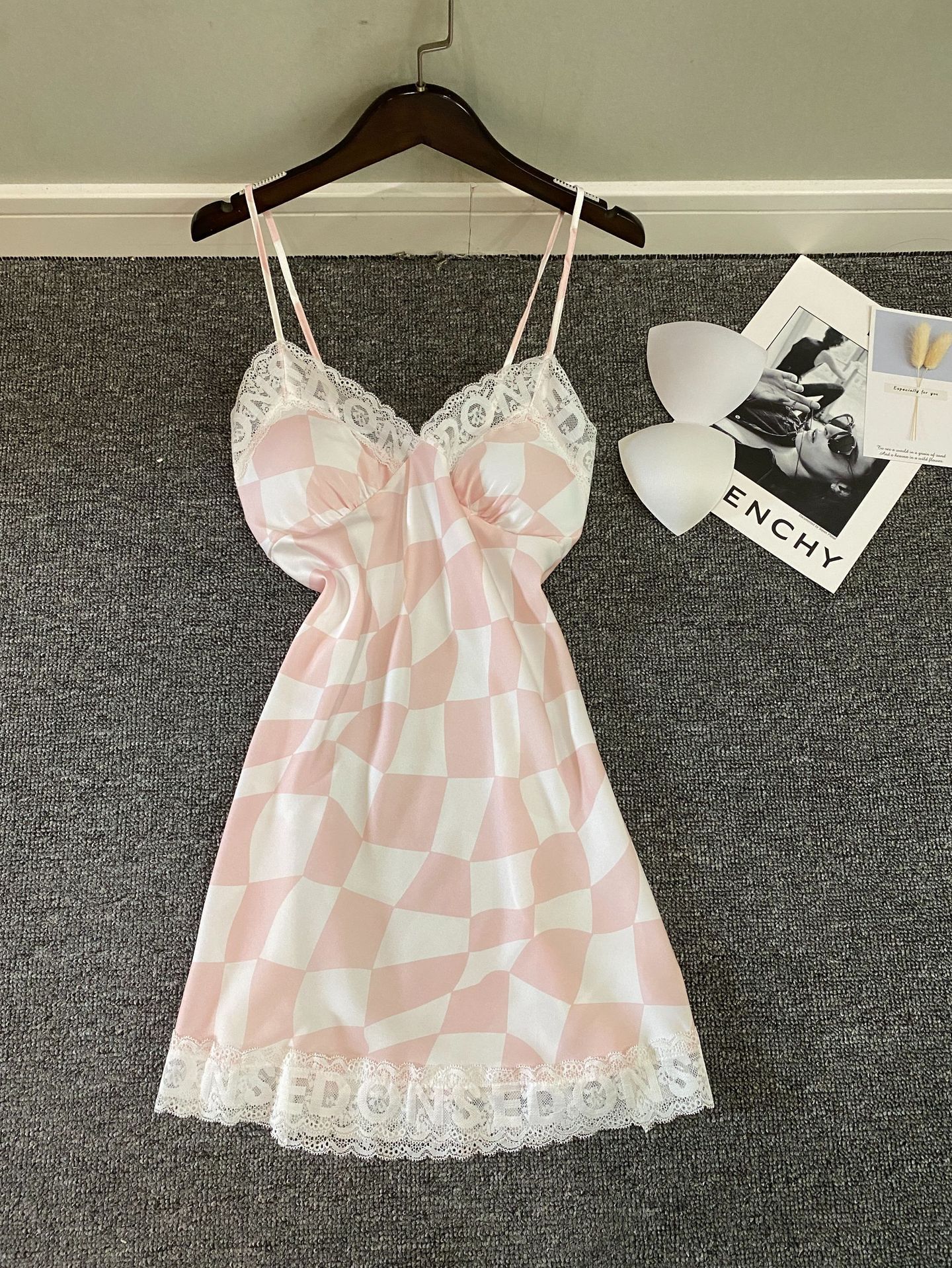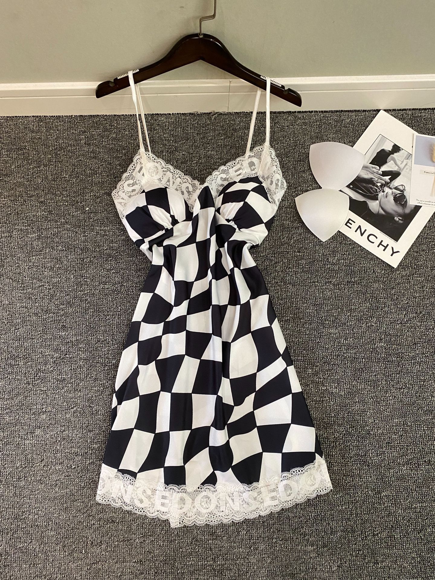 性感睡裙女士夏季吊带冰丝绸睡衣印花纯欲睡衣带胸垫家居服冰丝