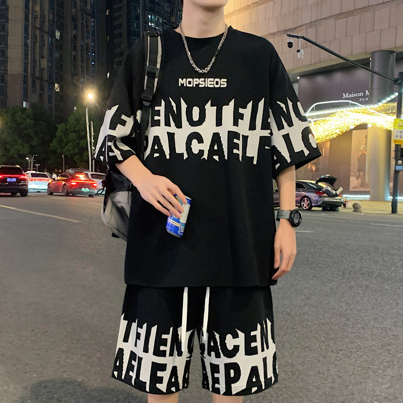 套装男短袖T恤男运动套装半袖短裤男士宽松透气青少年休闲两件套