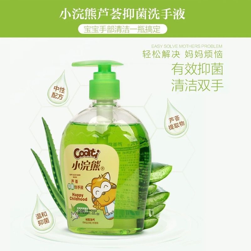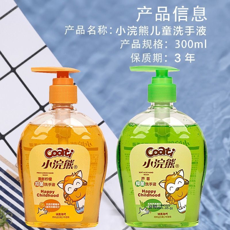 【抑菌】小浣熊儿童芦荟/柠檬洗手液300ml幼儿园宝宝学生清香温和