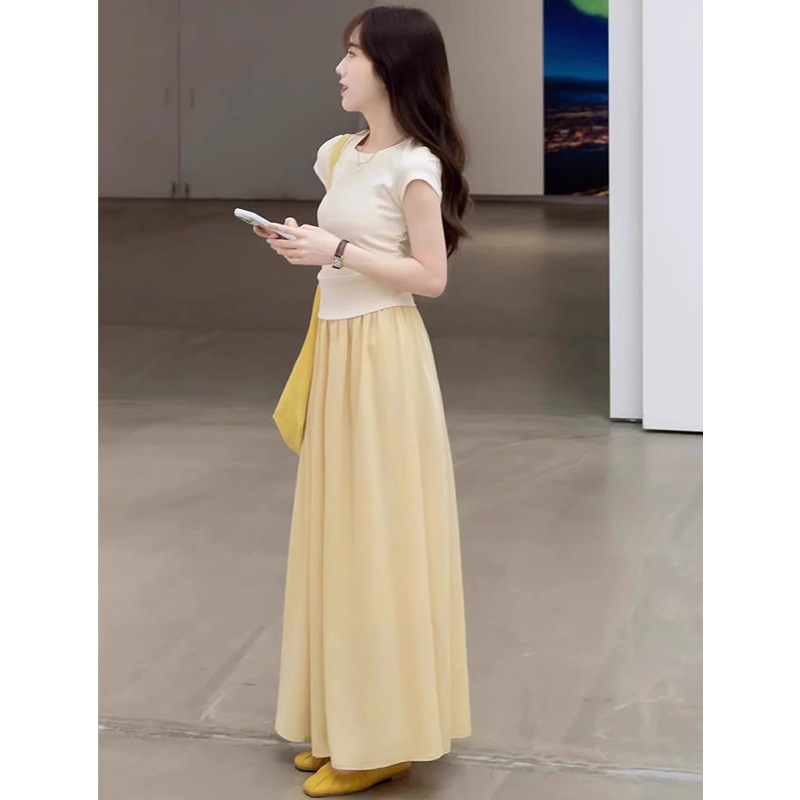 黄色半身裙女2025夏季新款松紧高腰a字大摆伞裙中长款气质百褶裙