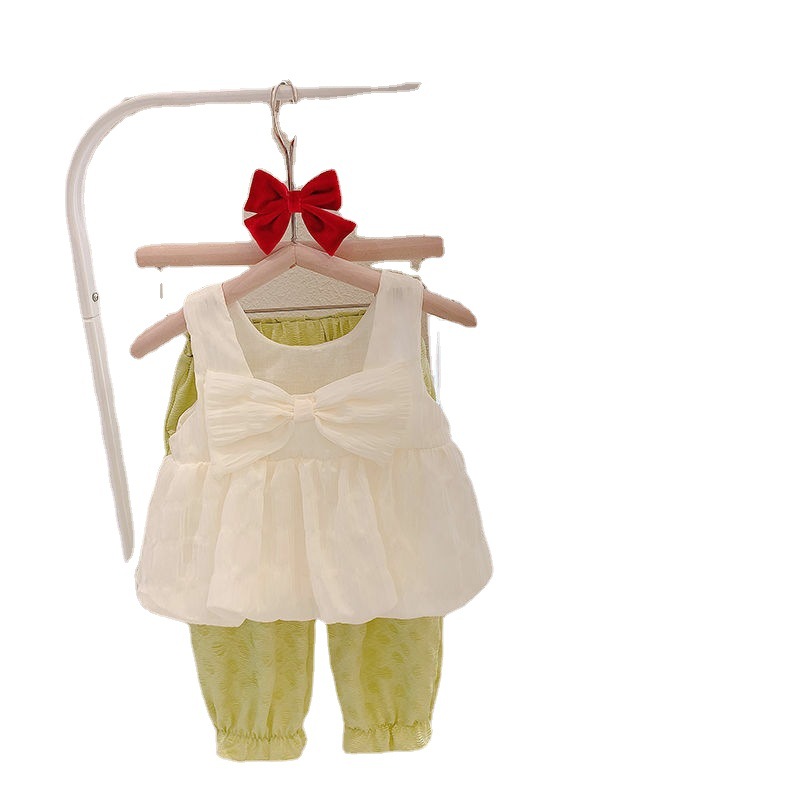 夏季女童套装宝宝网红洋气儿童个性潮牌韩版蝴蝶结背心上衣九分裤