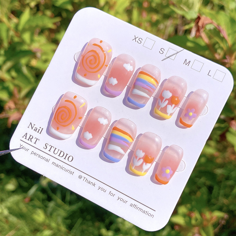纯手工穿戴甲夏日多巴胺可爱彩虹ins风短方圆美甲可拆卸甲片