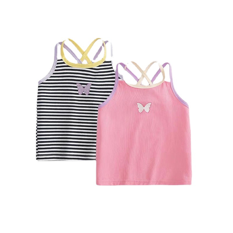女童夏装背心吊带宝宝网红洋气儿童个性潮牌韩版拼色条纹卡通上衣