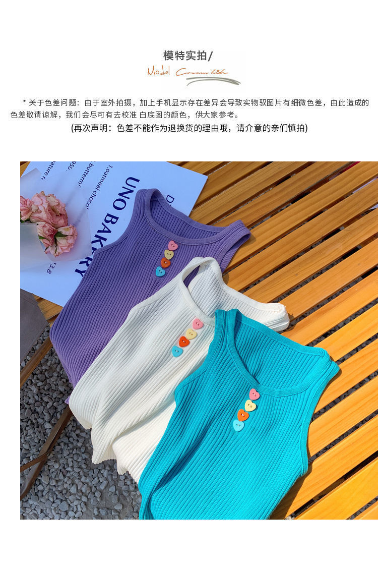 女童夏装背心吊带宝宝网红洋气儿童个性潮牌韩版彩色爱心纽扣外穿