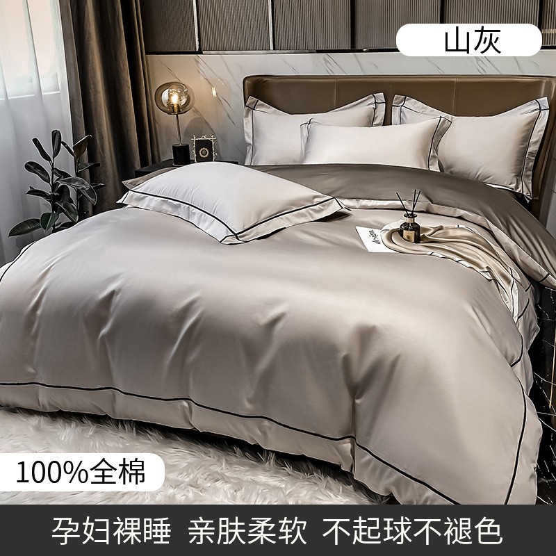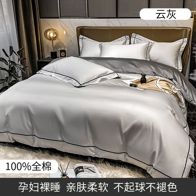 高端全棉160支长绒棉四件套纯棉简约100素色被套欧式床上用品