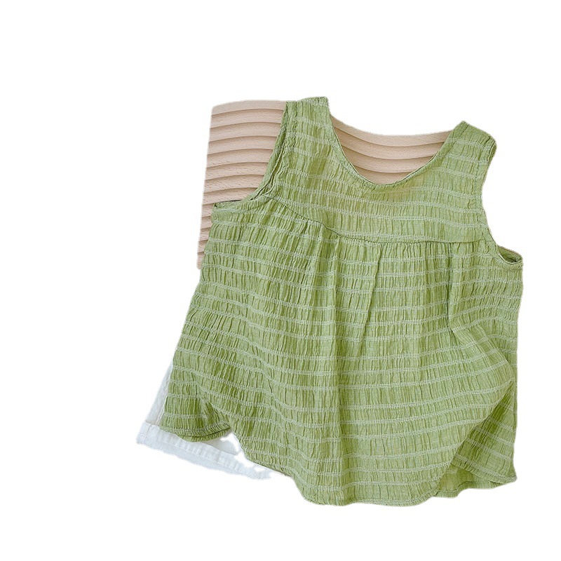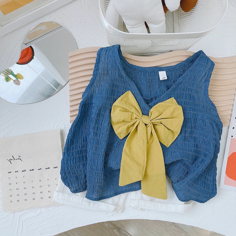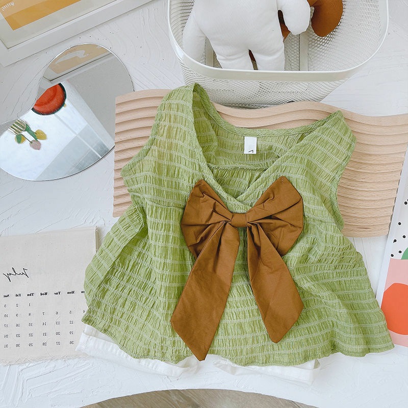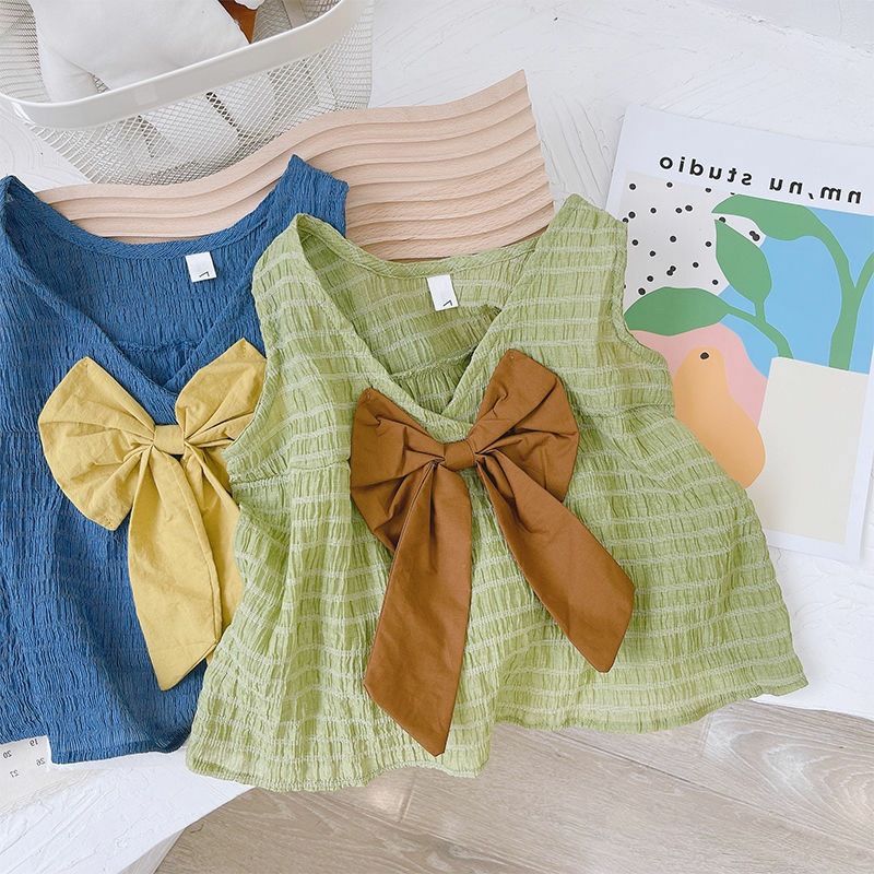 女童夏装背心宝宝网红洋气儿童个性潮韩版V领蝴蝶结无袖甜美上衣