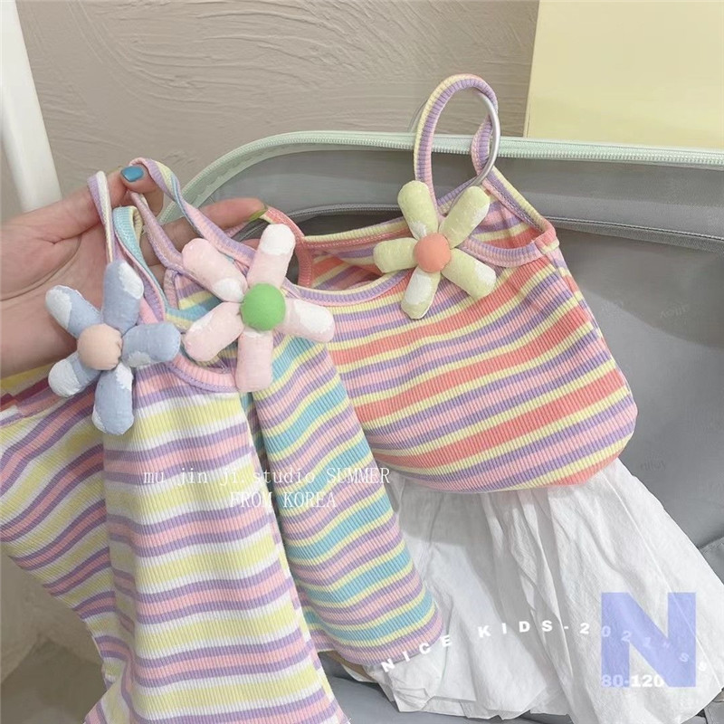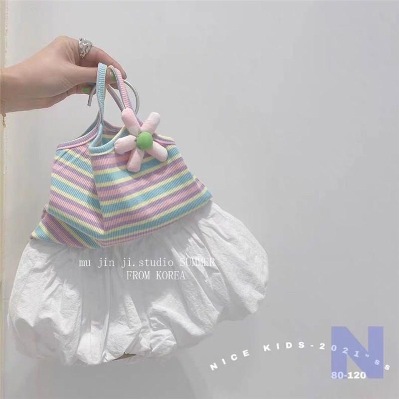 夏季女童套装宝宝网红洋气儿童个性潮韩版清新花朵条纹吊带花苞裤