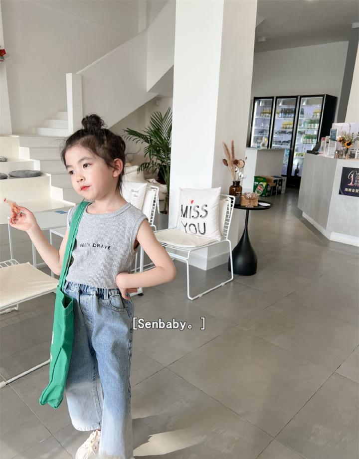 女童夏装背心T恤宝宝洋气儿童个性潮牌韩版字母百搭时髦网红上衣