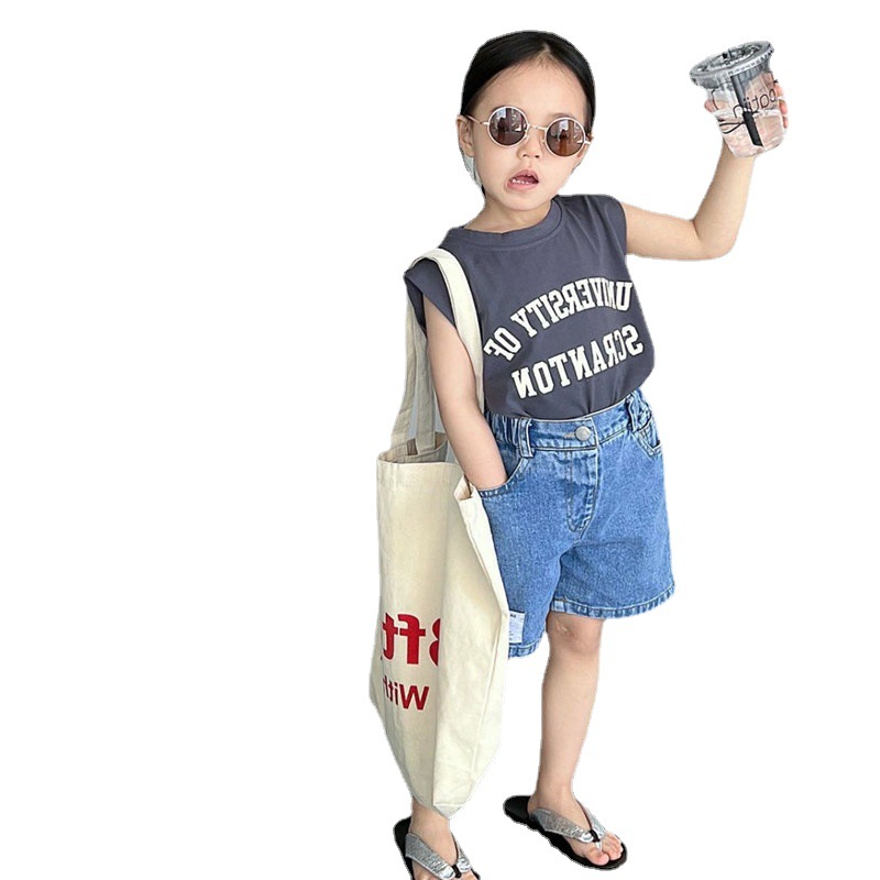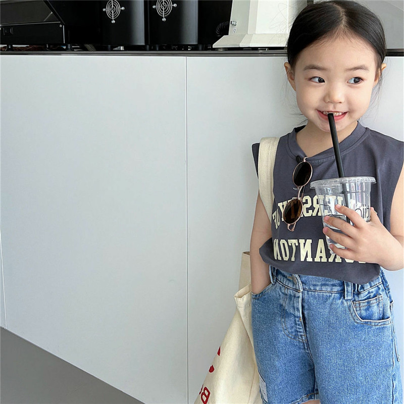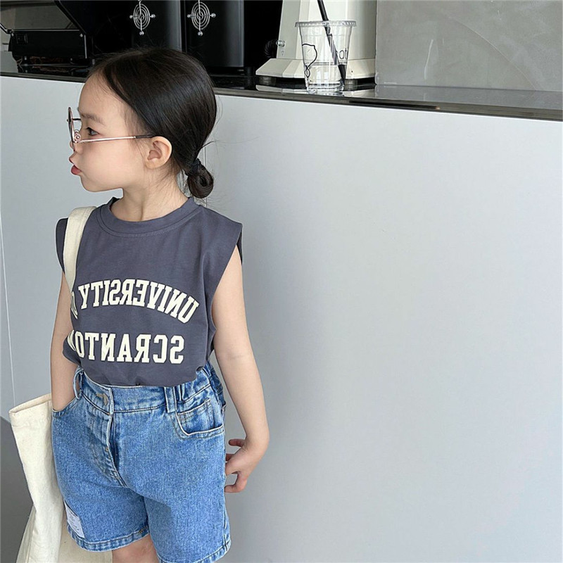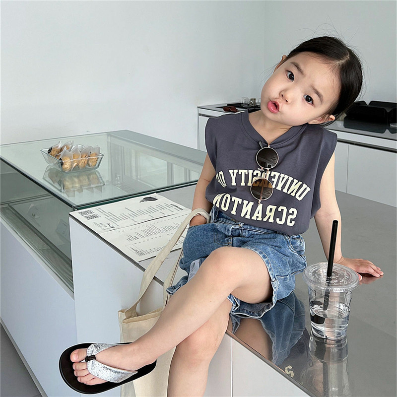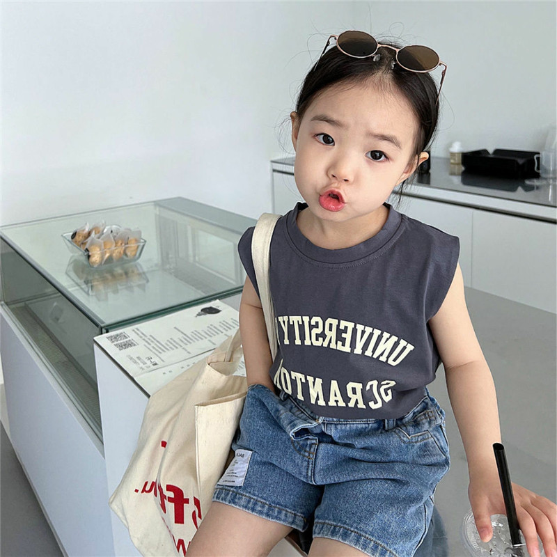 女童夏装背心T恤宝宝洋气儿童个性潮牌韩版百搭字母时髦上衣