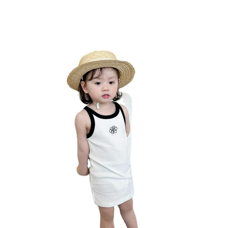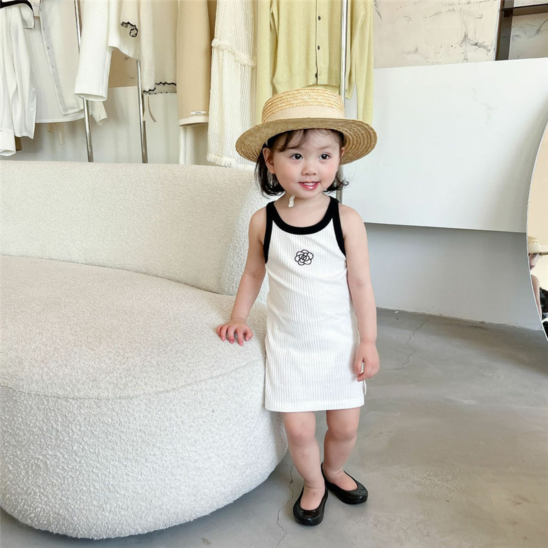 夏季女童连衣裙宝宝洋气儿童个性潮牌韩版刺绣花朵背心吊带公主裙
