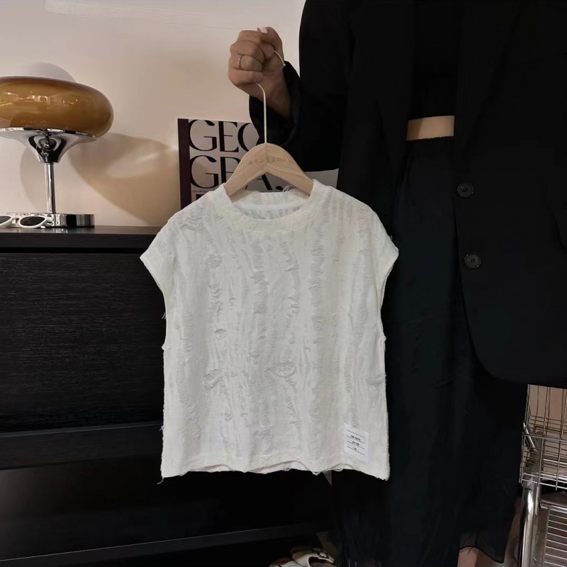 夏季男女童背心T恤宝宝洋气儿童个性潮韩版时髦炸街网红破洞上衣