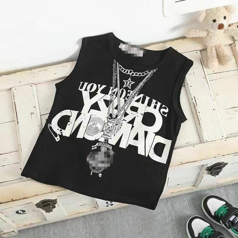 夏季男女童背心T恤宝宝洋气儿童个性潮牌外贸INS卡通字母无袖上衣