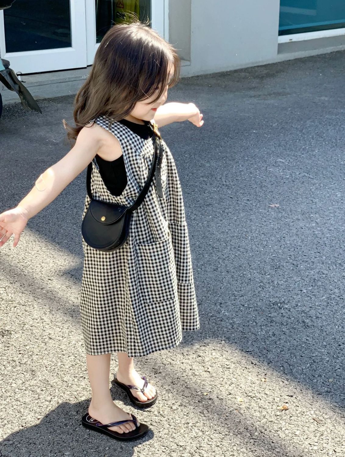 夏季女童套装宝宝洋气儿童个性潮韩版时髦网红炸街背心格子背带裤