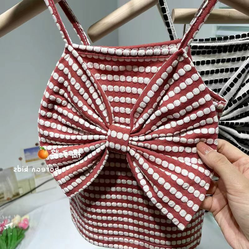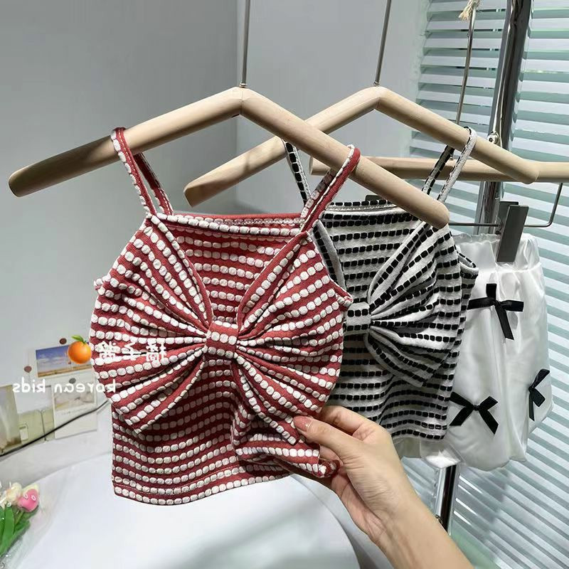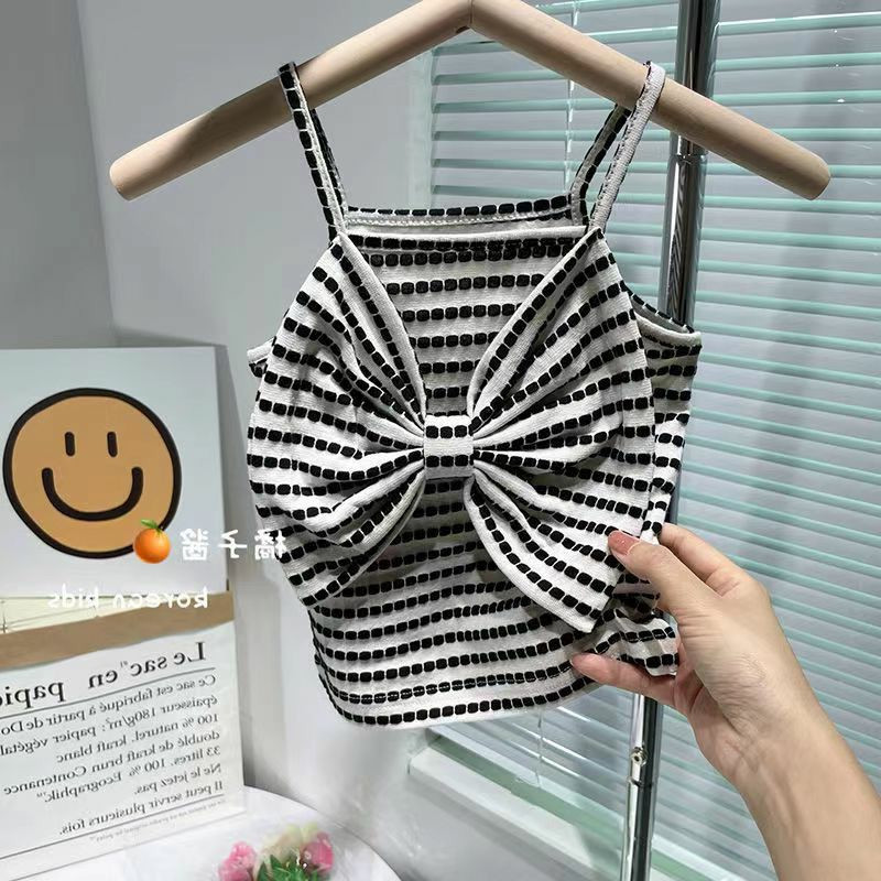 女童夏装背心吊带宝宝洋气儿童个性潮韩版蝴蝶结条纹网红外穿上衣
