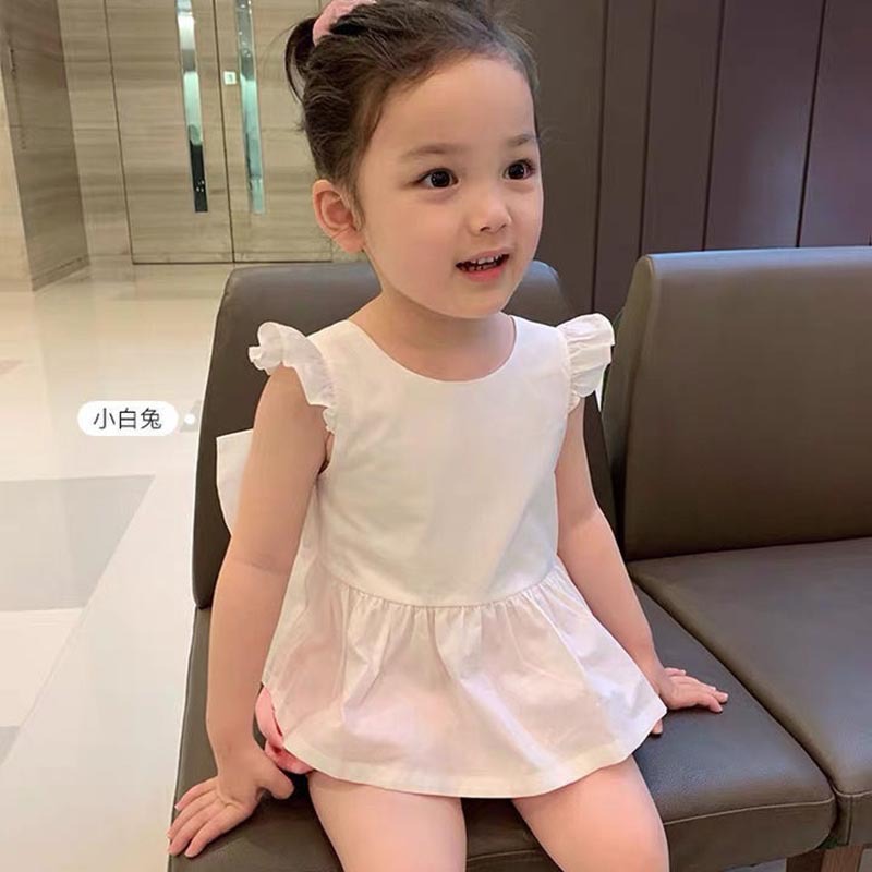夏季女童背心宝宝洋气儿童个性潮韩版飞袖露背蝴蝶结甜美外穿上衣