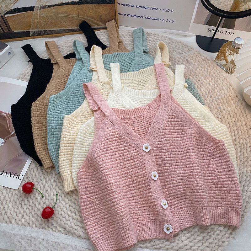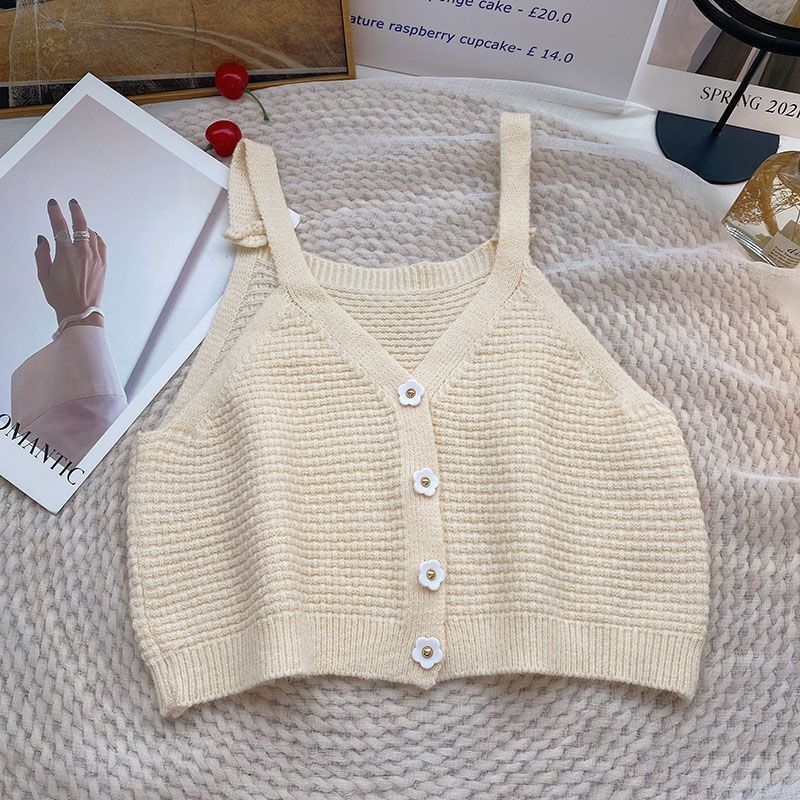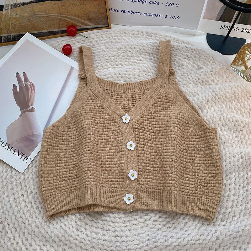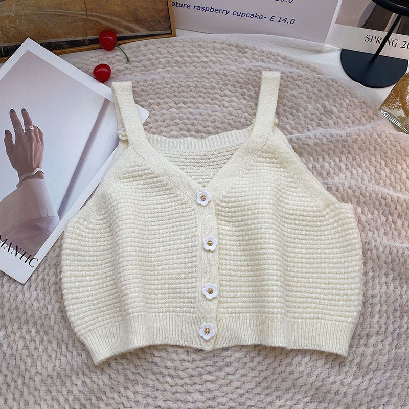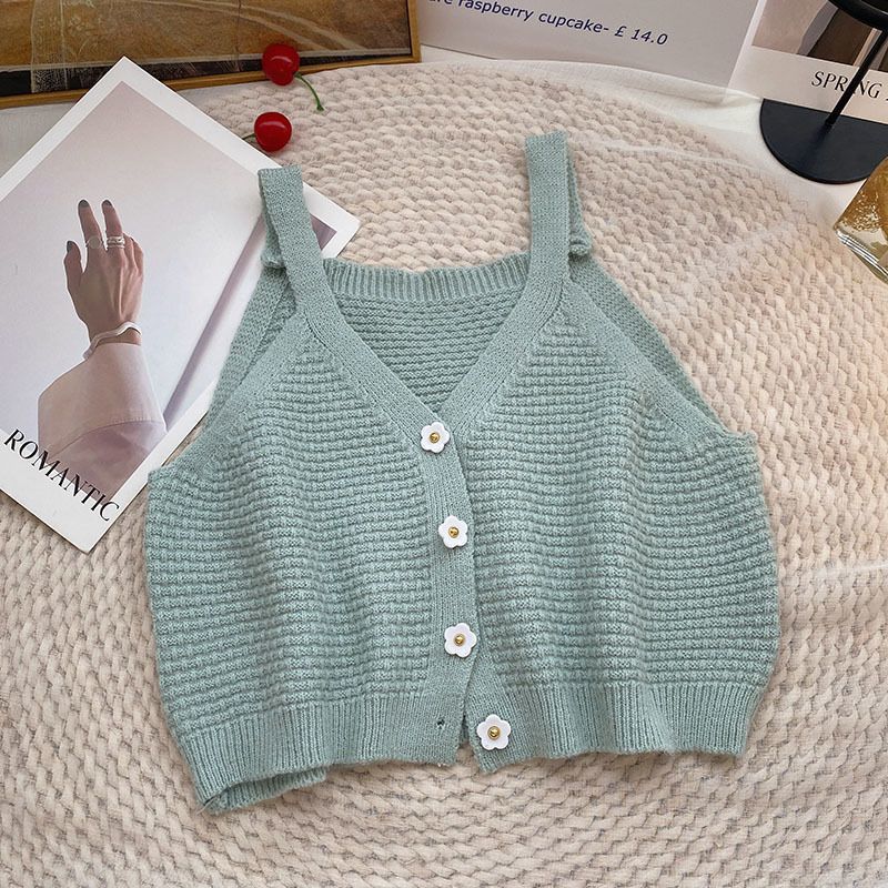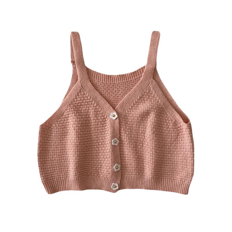 夏季女童背心吊带宝宝洋气儿童个性潮韩版花朵纽扣针织衫外穿上衣