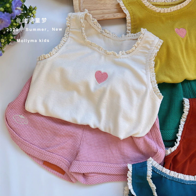 夏季女童背心宝宝洋气儿童个性潮韩版木耳边爱心花边无袖外穿上衣