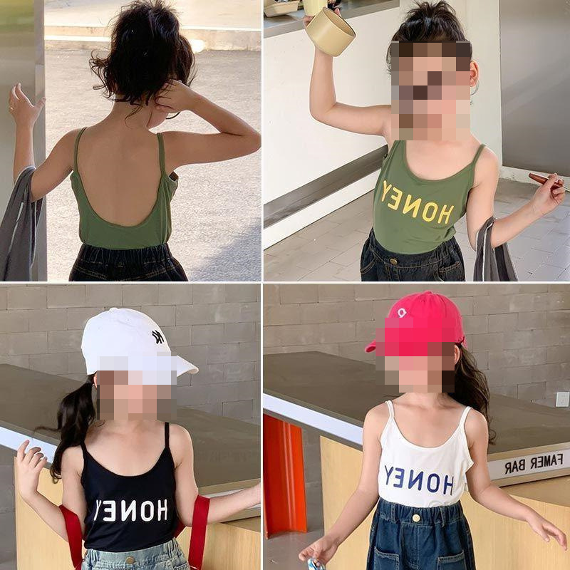 夏季女童背心吊带宝宝洋气儿童个性潮牌韩版字母露背时髦外穿上衣