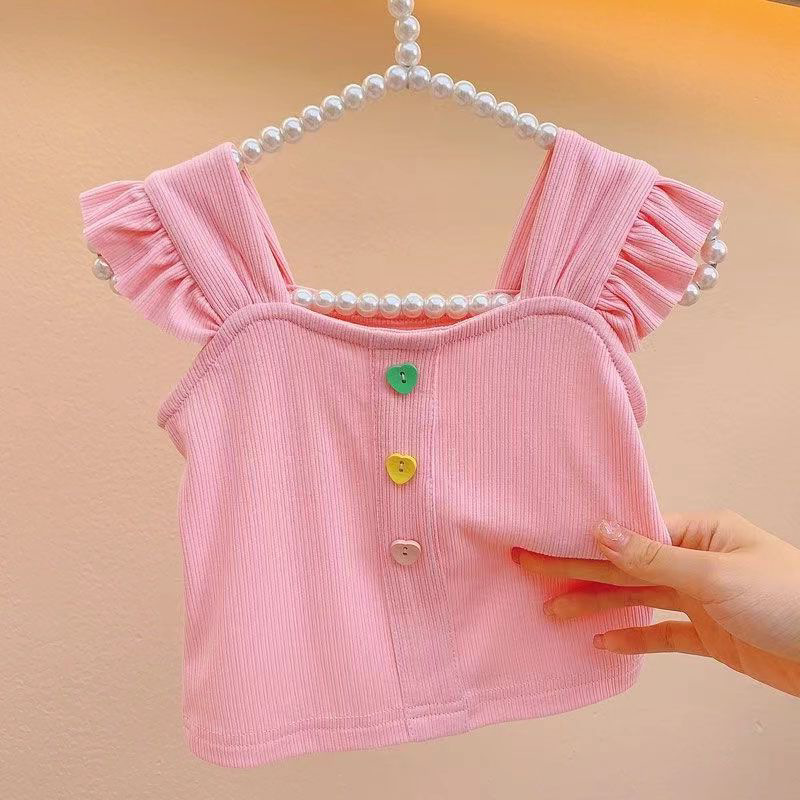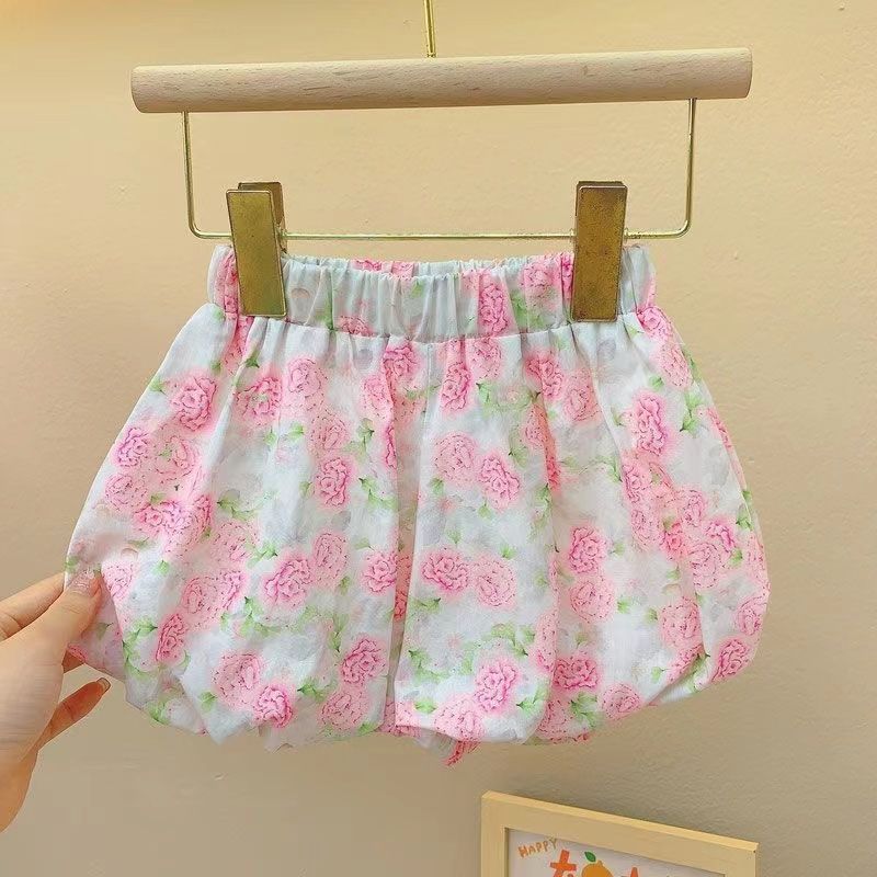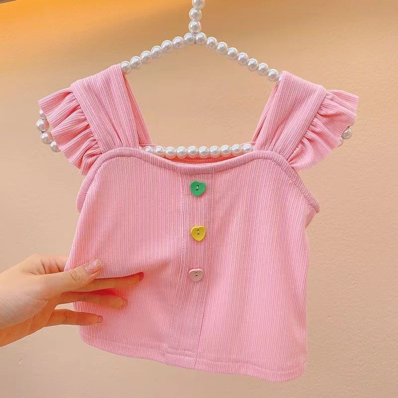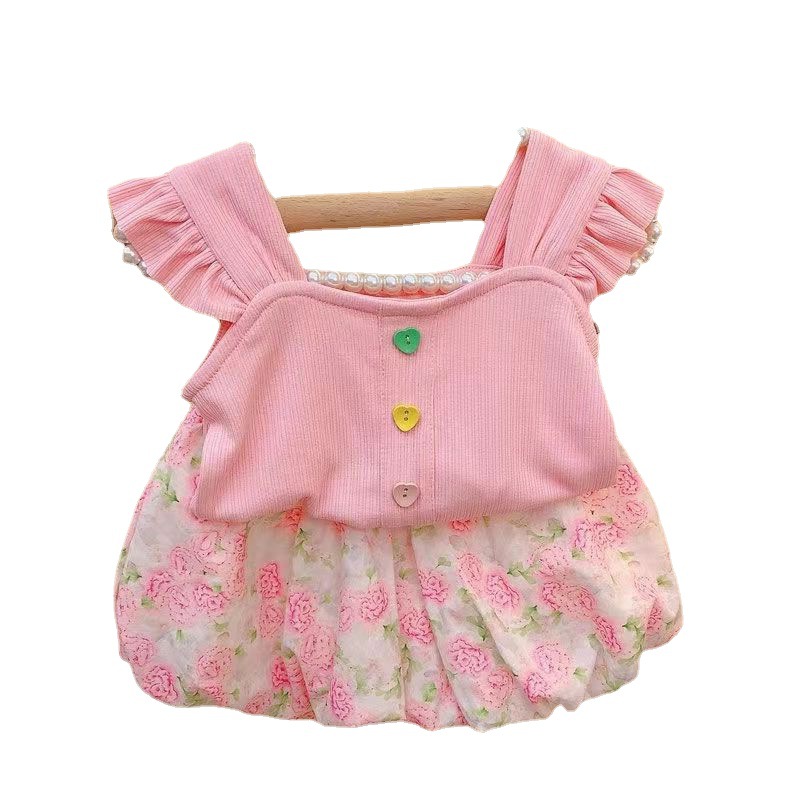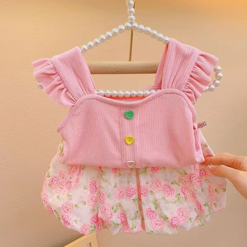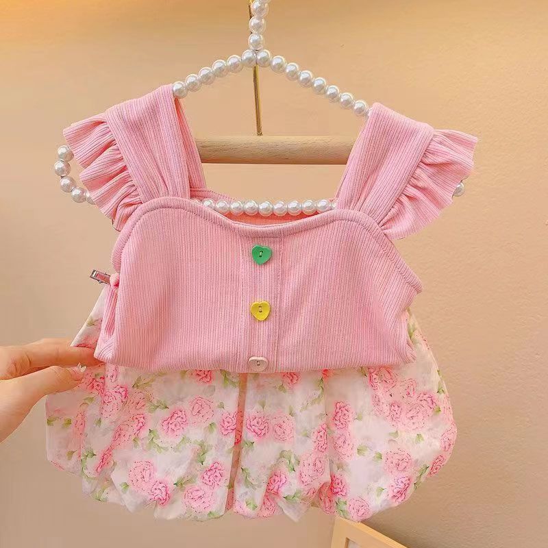 夏季女童套装宝宝洋气儿童个性潮清新韩版爱心吊带花朵花苞裤短裤