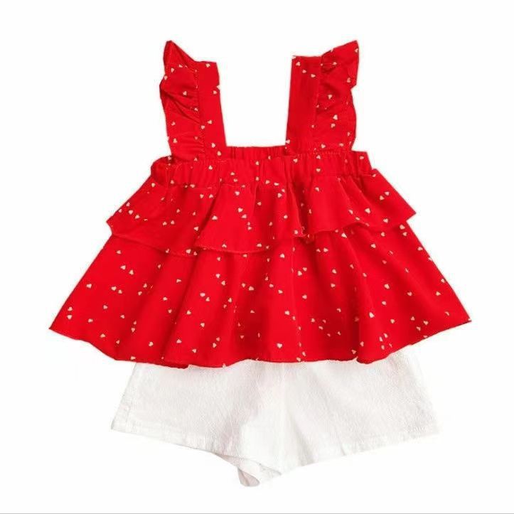 夏季女童套装宝宝洋气儿童个性潮网红甜美波点雪纺蛋糕吊带衫短裤