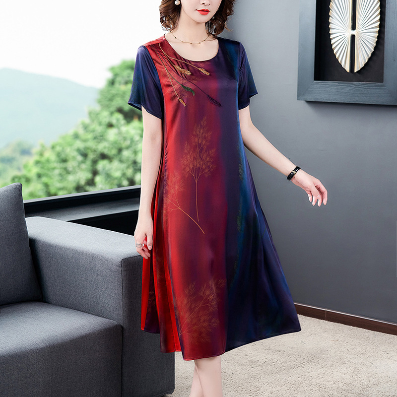 冰丝夏季连衣裙改良版过膝长裙子新款夏装中老年女装潮