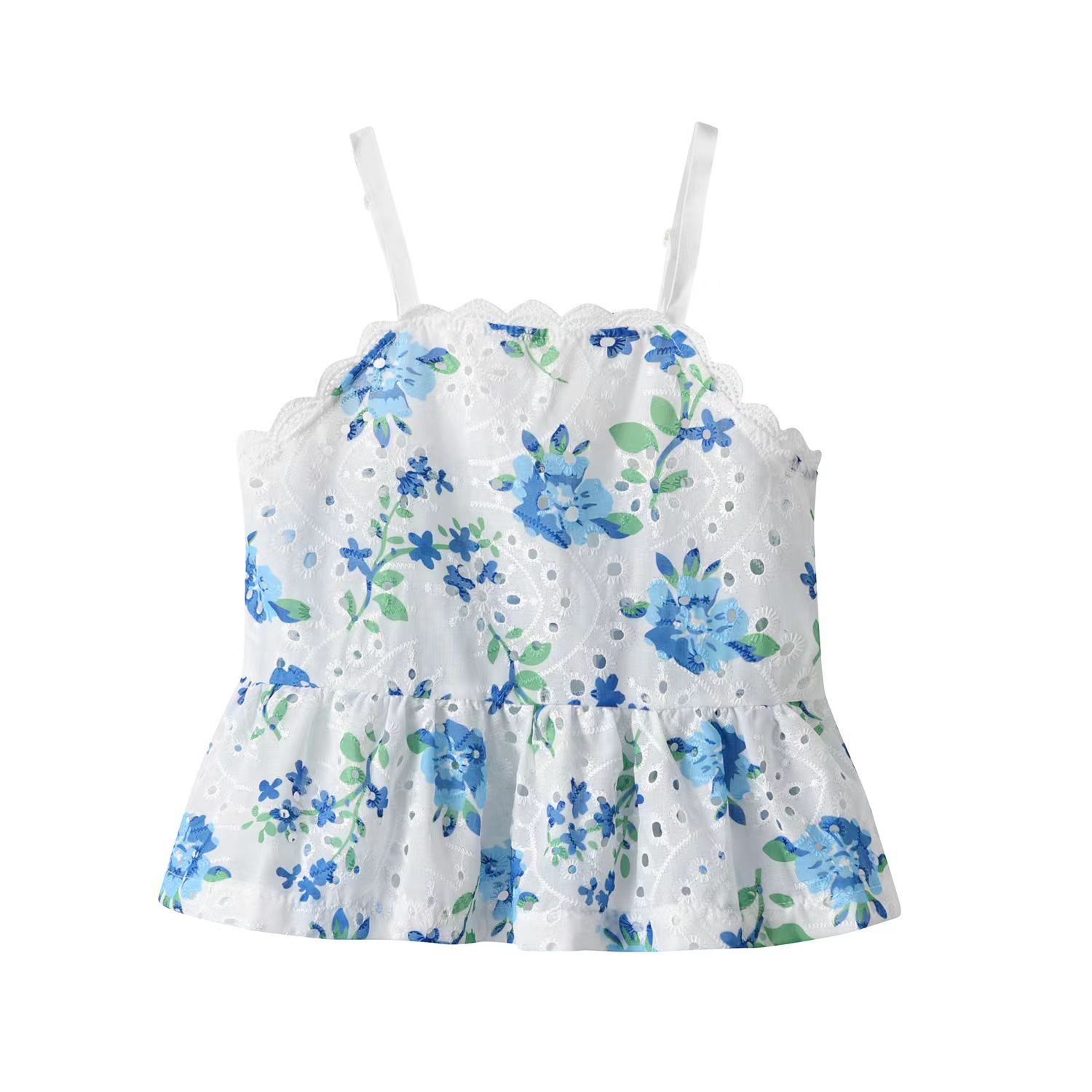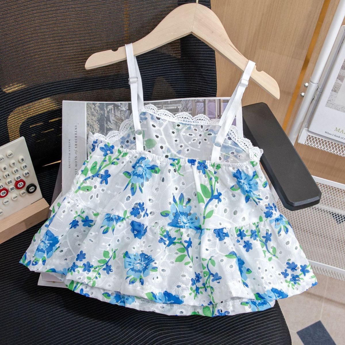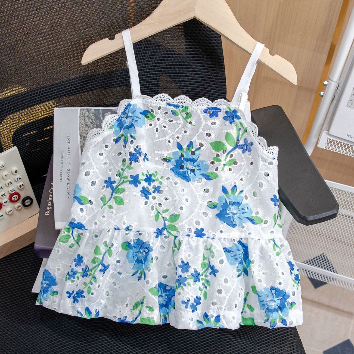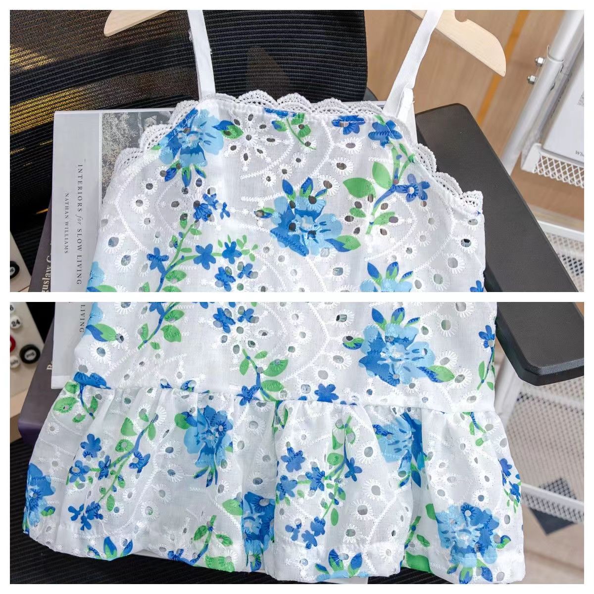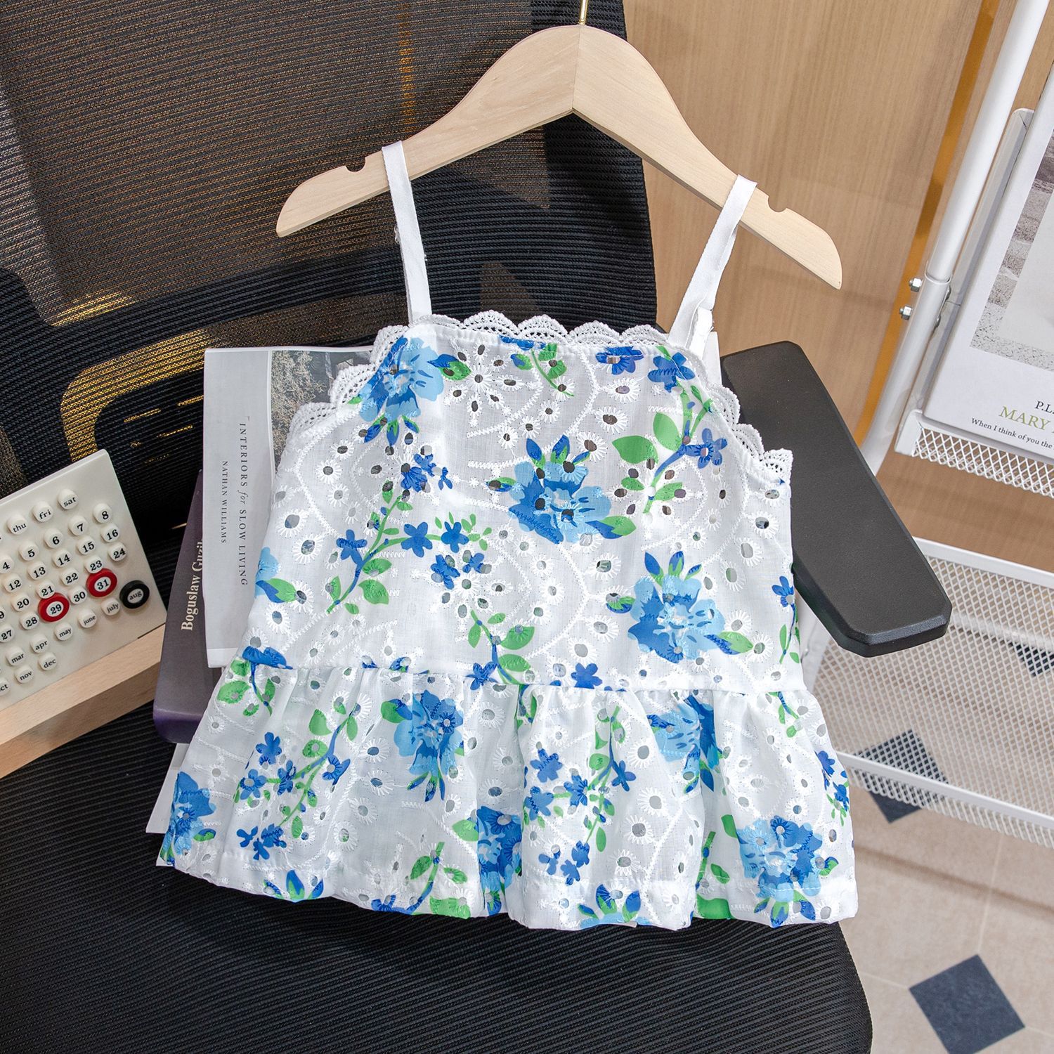 夏季女童吊带衫宝宝洋气儿童个性潮韩版花朵花边镂空时髦外穿上衣