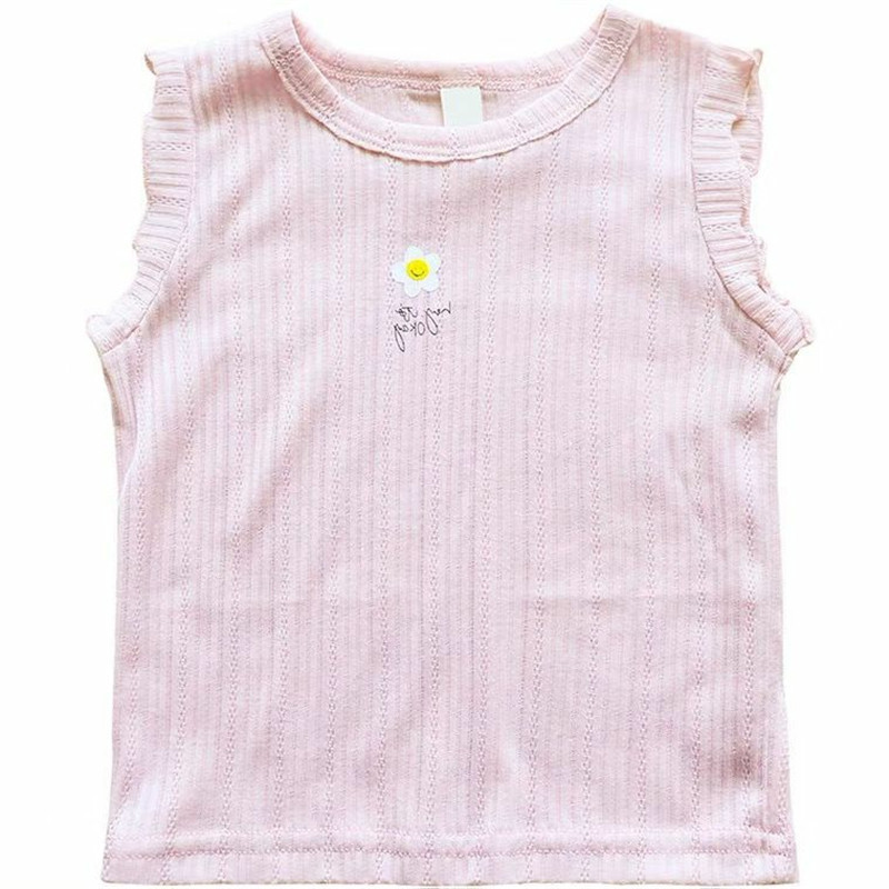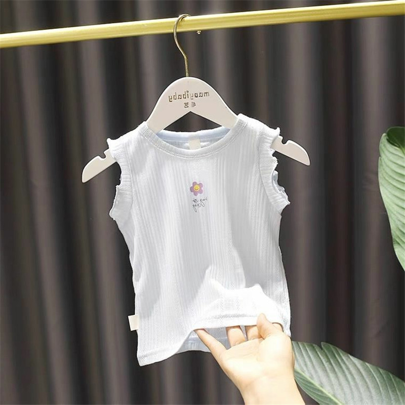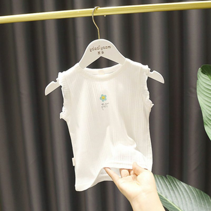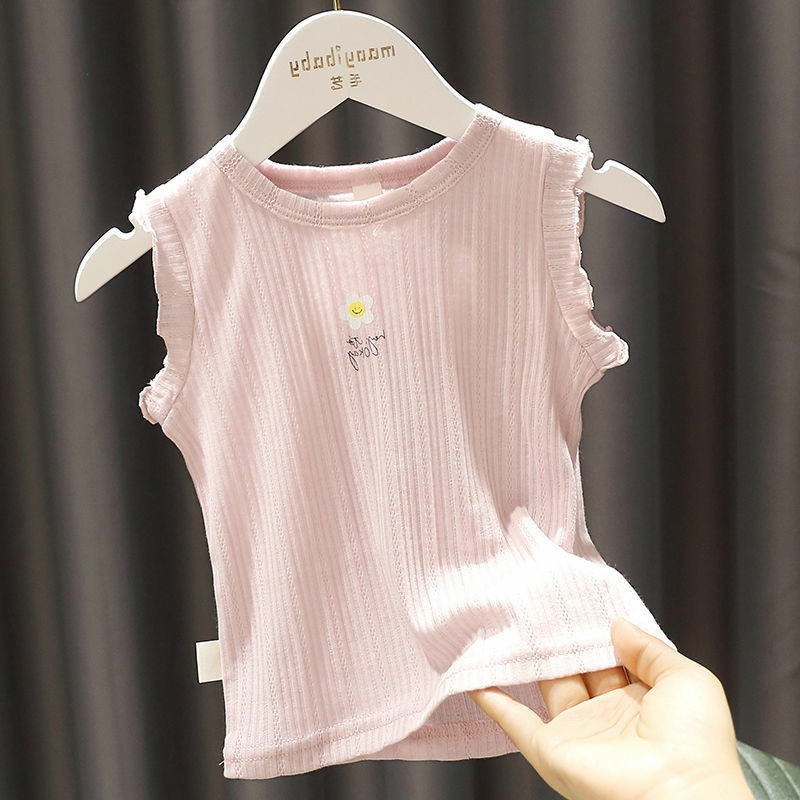 女童夏装背心宝宝洋气儿童个性潮韩版提花木耳边花朵字母外穿上衣