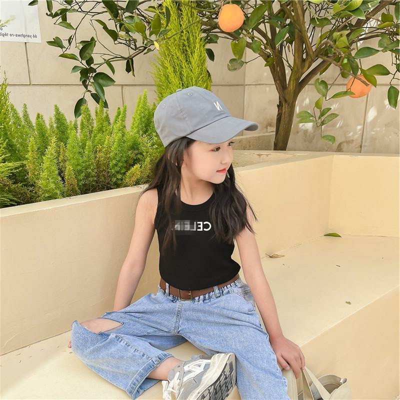 夏季女童装背心上衣宝宝洋气儿童个性潮牌外贸INS字母时髦无袖T恤