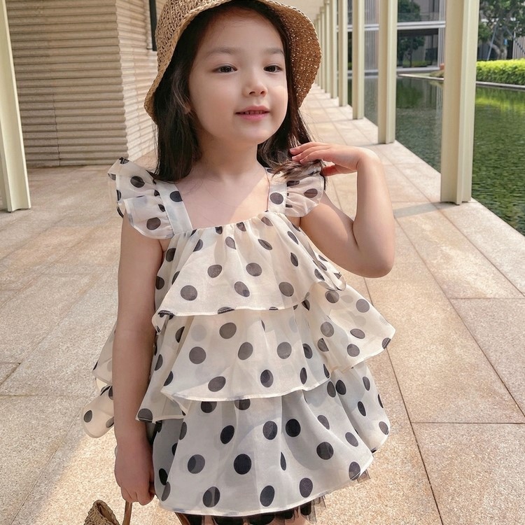 夏季女童背心吊带宝宝网红洋气儿童个性潮韩版时髦波点蛋糕雪纺衫