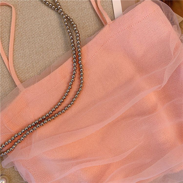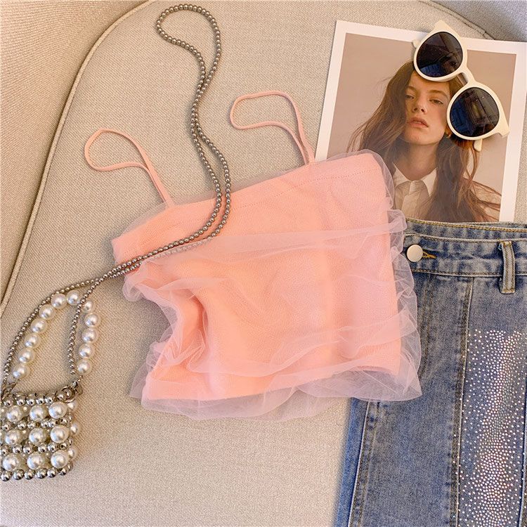 女童夏装背心吊带宝宝洋气儿童个性潮牌韩版时髦网红网纱露背短款