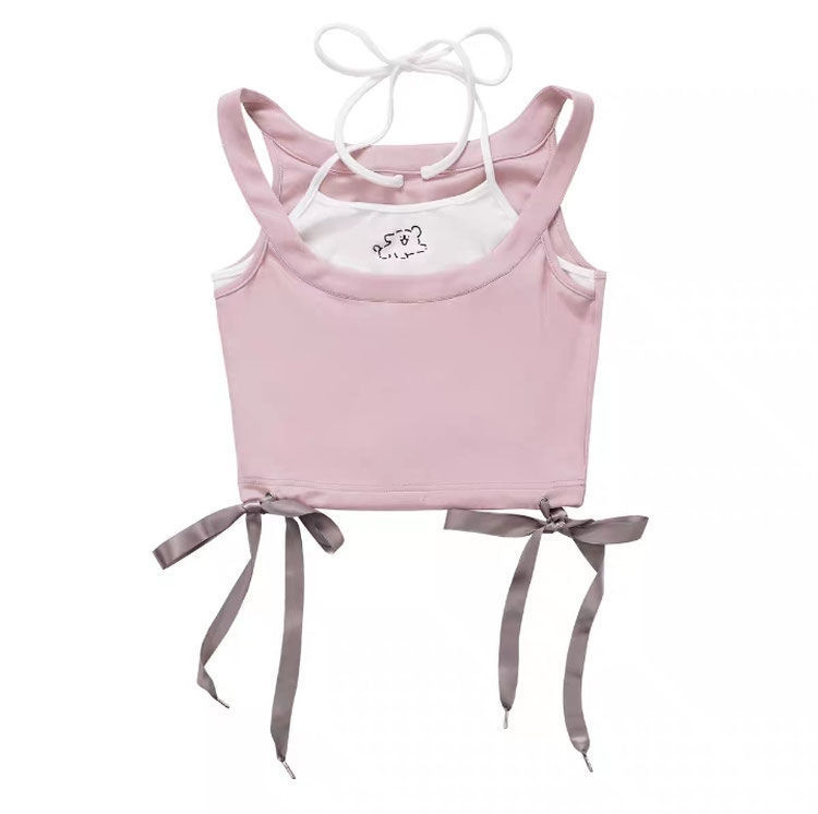 女童夏装背心吊带宝宝洋气儿童个性潮牌韩版卡通多巴胺假两件上衣