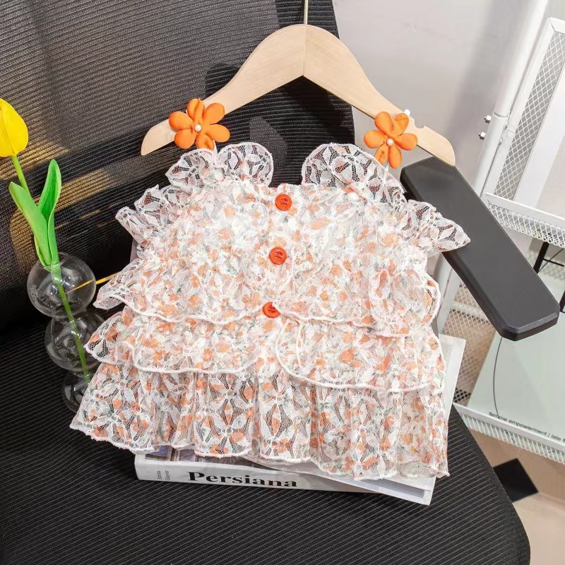 女童夏装背心吊带宝宝洋气儿童个性潮碎花清新可爱雪纺蛋糕娃娃衫