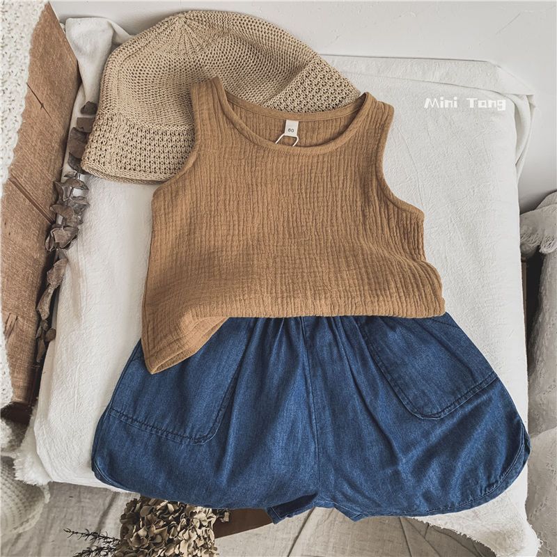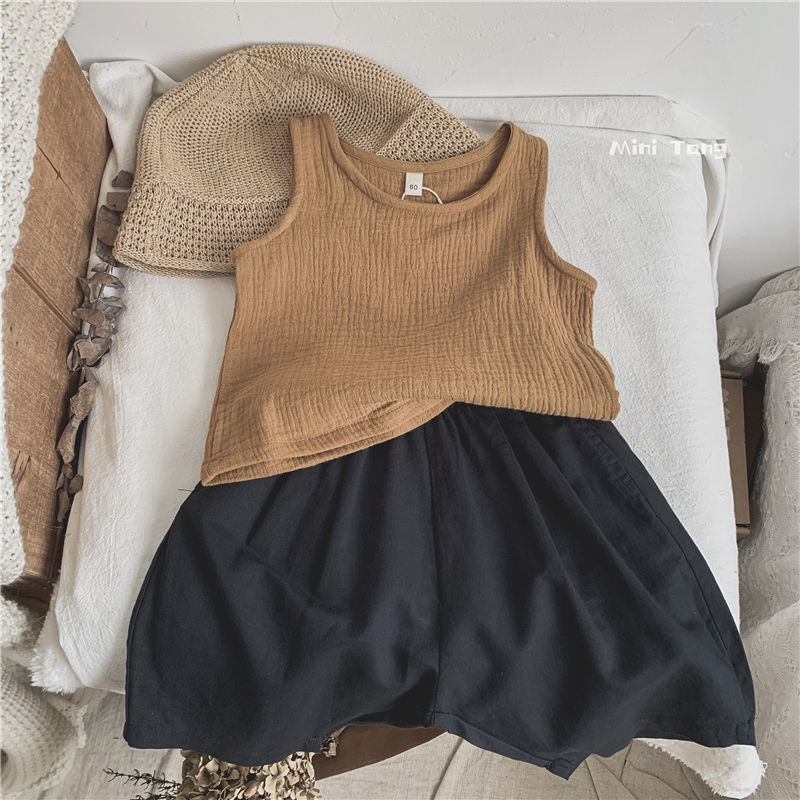 夏季男女童背心吊带宝宝洋气儿童个性潮复古森系棉麻纯色内搭外穿