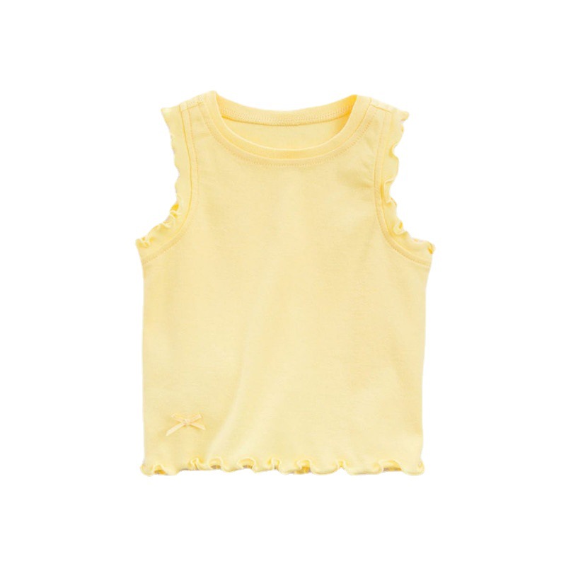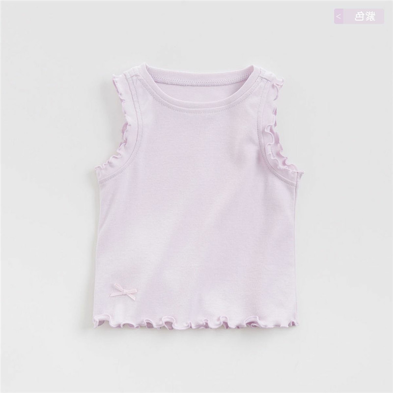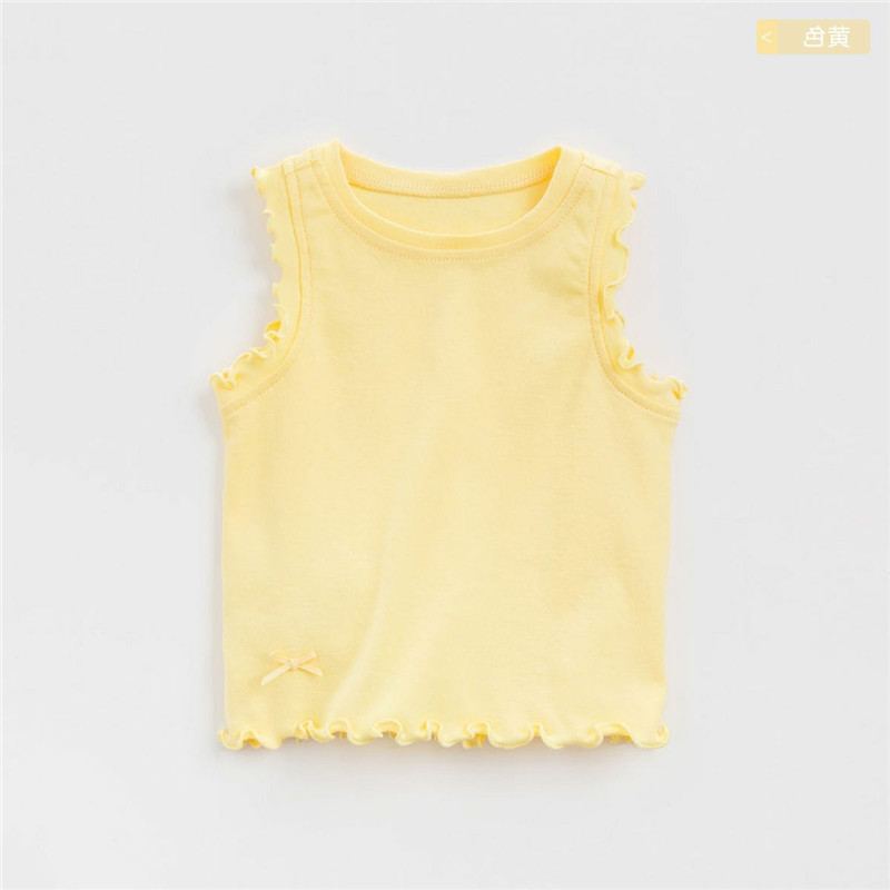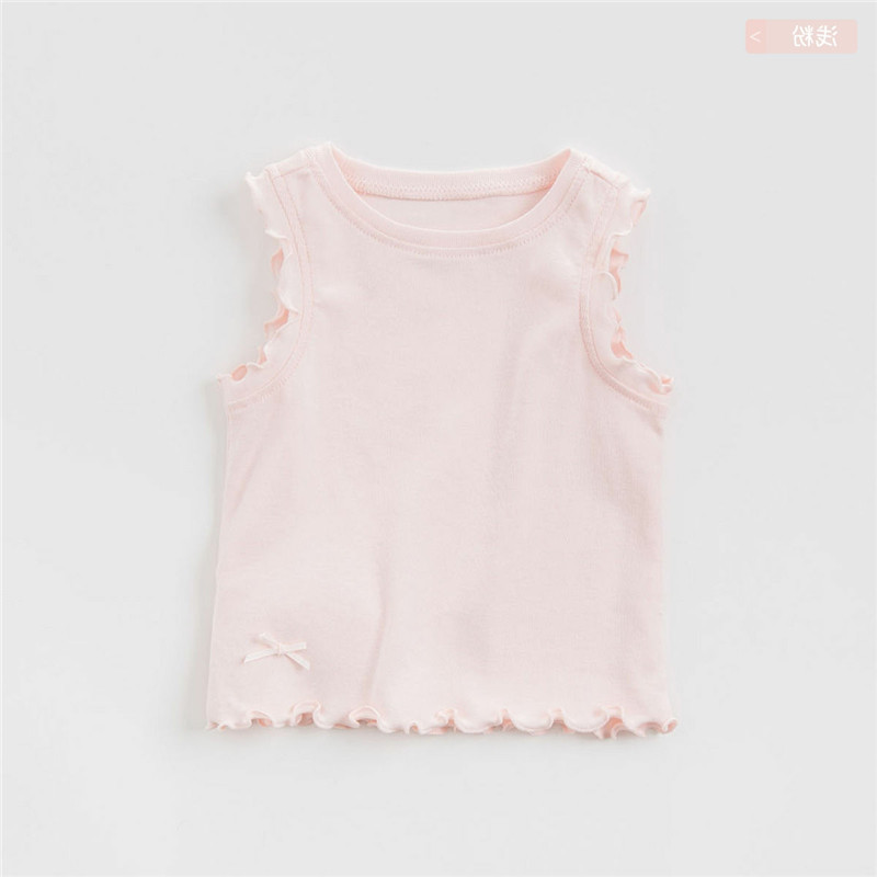 女童夏装背心上衣宝宝洋气儿童个性潮牌纯色木耳边蝴蝶结内搭外穿