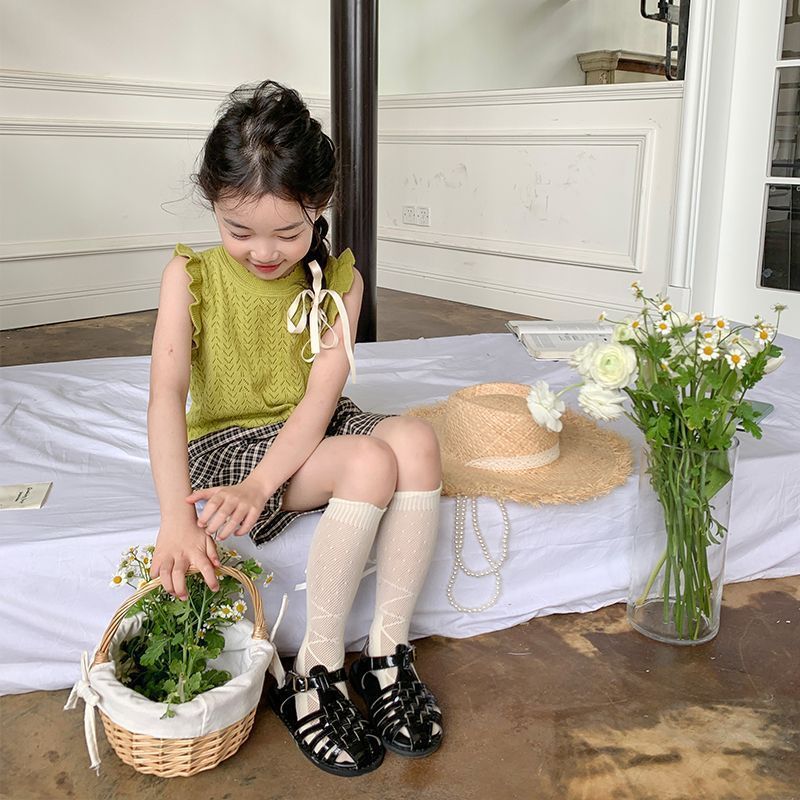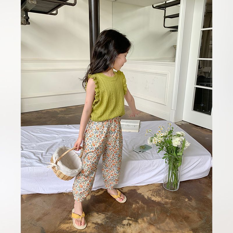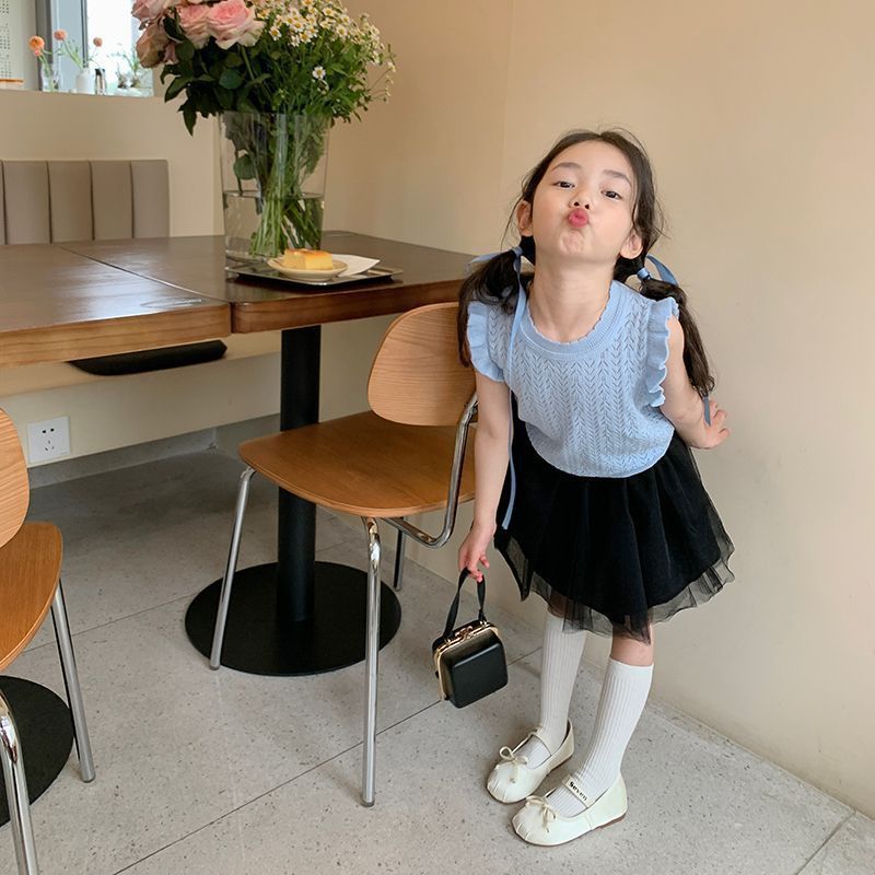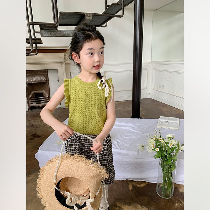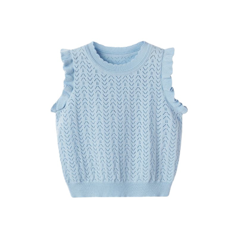 夏季女童背心宝宝洋气儿童个性潮牌韩版花边提花针织清新无袖上衣