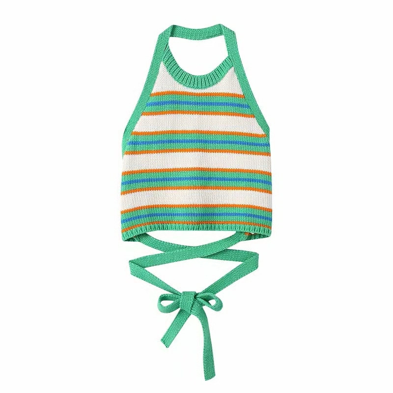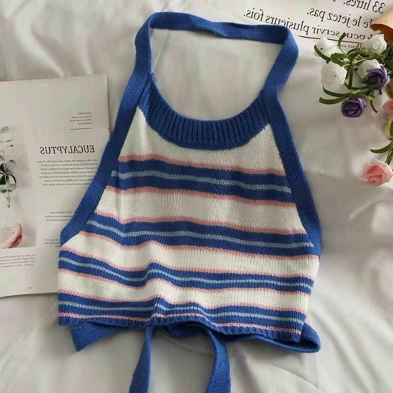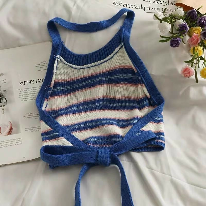 女童夏装背心吊带宝宝网红洋气儿童个性潮牌韩版拼色条纹挂脖上衣