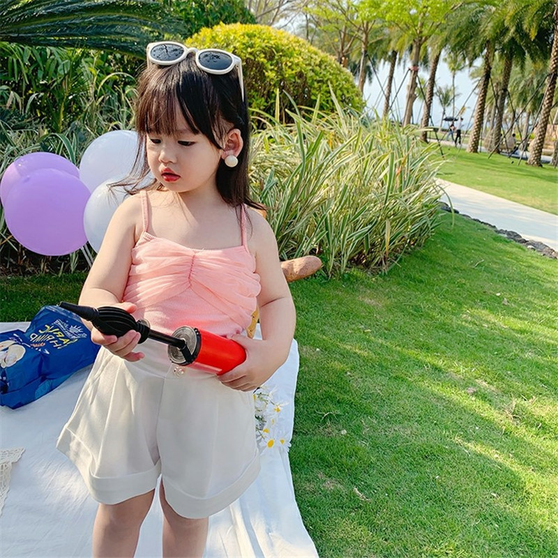 夏季女童背心吊带宝宝网红洋气儿童个性潮韩版糖果色网纱外穿上衣