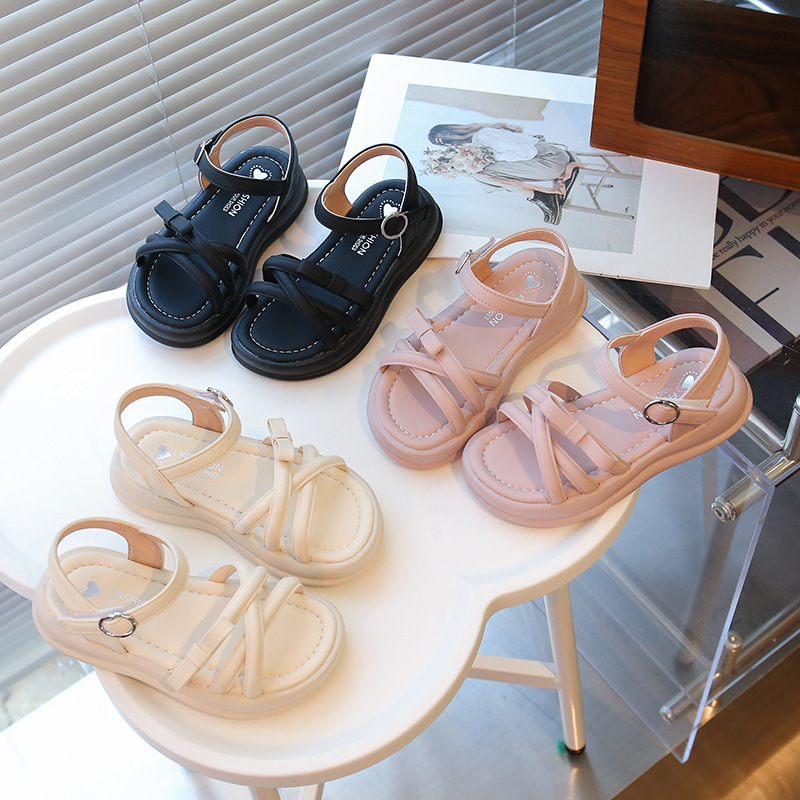 法式高级感厚底凉鞋女夏季时尚女童小香风2025新款平底沙滩罗马鞋