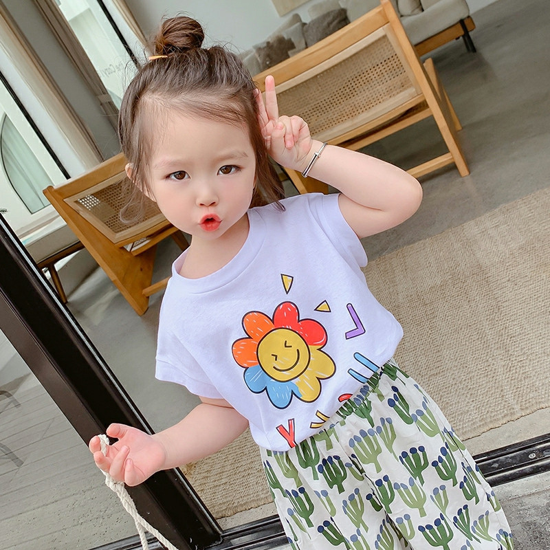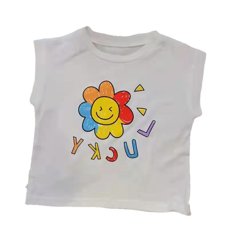 夏季女童背心T恤宝宝网红洋气儿童个性潮牌韩版卡通印花无袖上衣