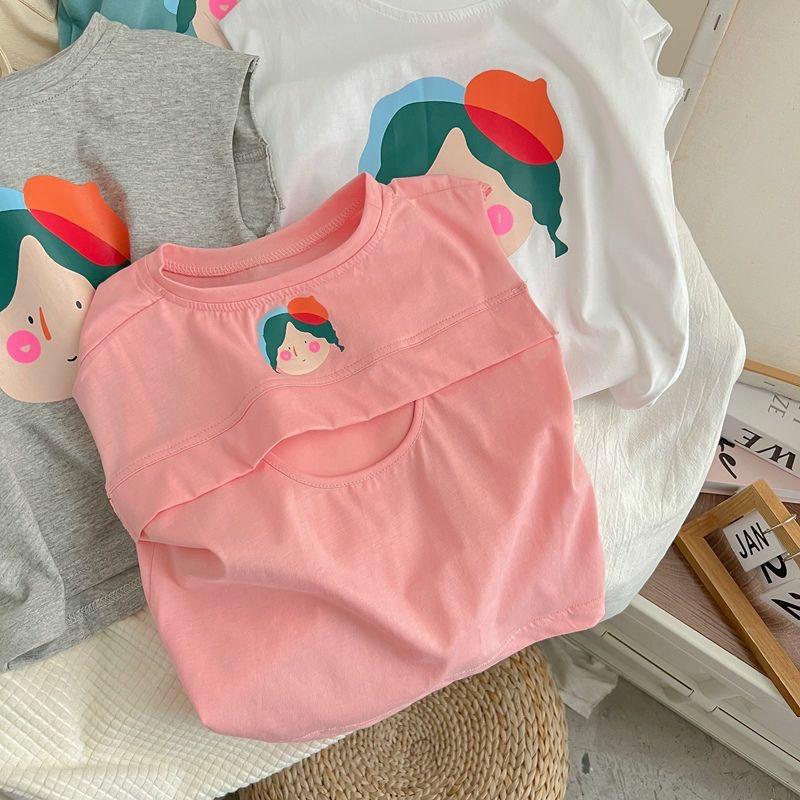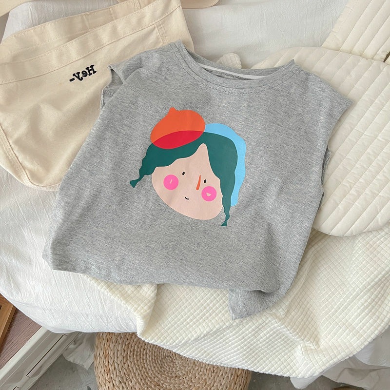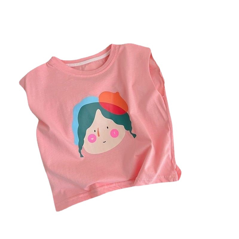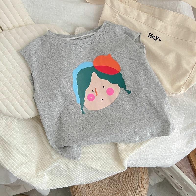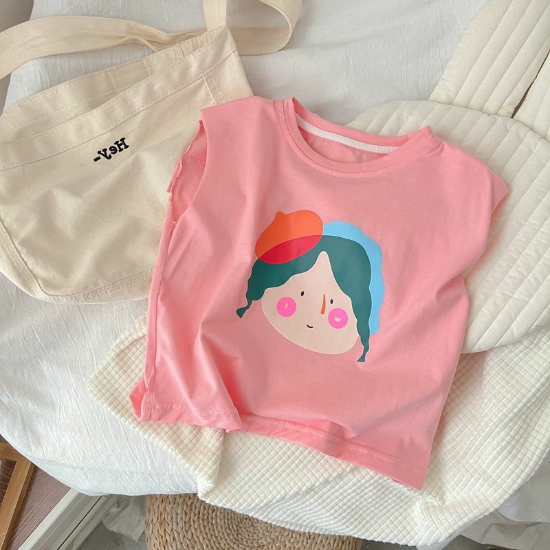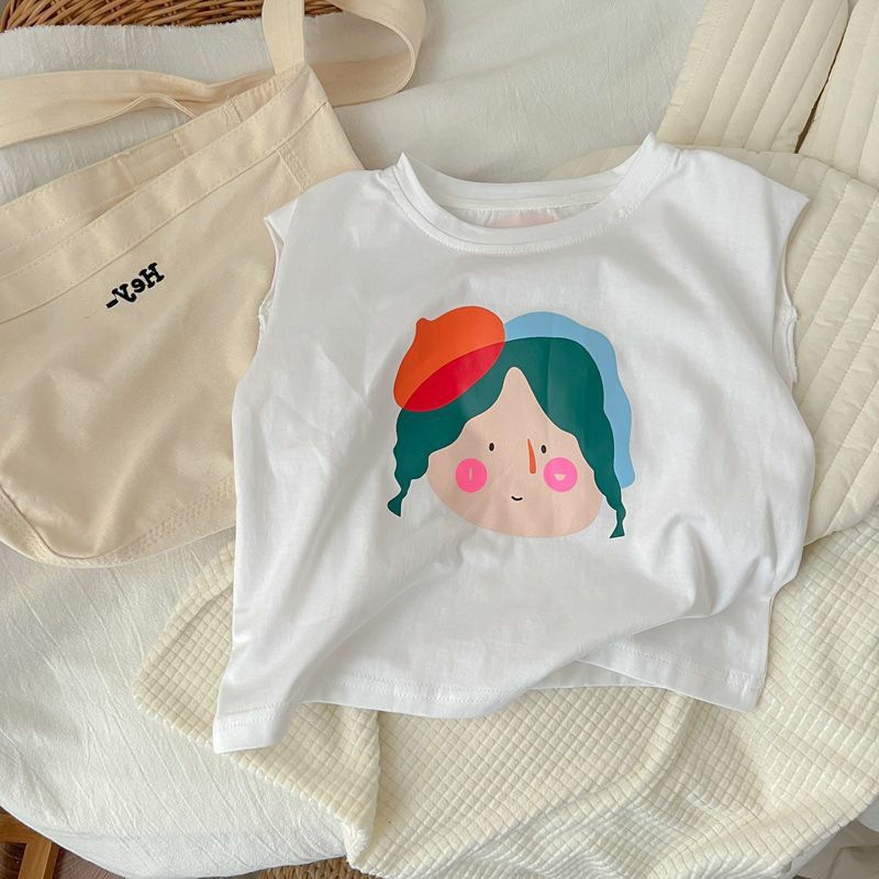 夏季女童背心T恤宝宝洋气儿童个性潮牌韩版可爱卡通无袖外穿上衣